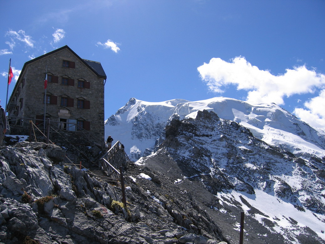 Za hrebeňom som obul mačky a po tvrdom snehu som postupoval rýchlo po peknej stope. Pod bivakovou búdou bolo ešte jedno exponované miesto, po jeho prekonaní sa mi otvorila už bezproblémová cesta k vrcholu. Trhliny boli v pohode, sneh bol tvrdý. Predbehol som niekoľko lanových družstiev, ktoré vyrazili ráno z chaty a na vrcholovom plate som začal míňať prvé oproti idúce skupinky z horskými vodcami. Na vrchole ma privítal silný studený vietor. Stopky ukázali čas 4h 4min.