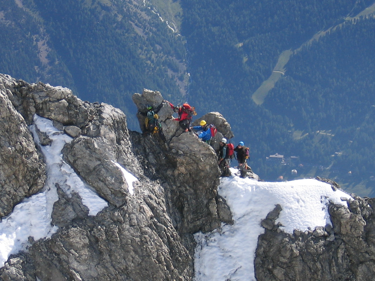 Ranný chládok ma zrýchloval a pribrzdilo ma až slniečko v sedle nad Tabaretou. Aj napriek občerstvovacej pauze sa mi podarilo vyjsť na Payerku za dve hodiny, čo bol sľubný čas. Na skalnom hrebeni, ktorým vedie ďalej výstup som bol prvý raz a musel som spomaliť kôli ťažšej orientácii. Aj tak som však napredoval pomerne rýchlo, kým som neprišiel ku kľúčovému miestu. Nevedel som o ňom a tak som sa exponovaný hrebeň pokúšal obísť sprava, keď sa mi to po dvoch pokusoch nepodarilo, tak už som vedel, že cesta musí ísť jedine hrebeňom. Rozdýchal som expozíciu a začal opatrne liezť skalným hrebeňom - na zostup som sa teda netešil.