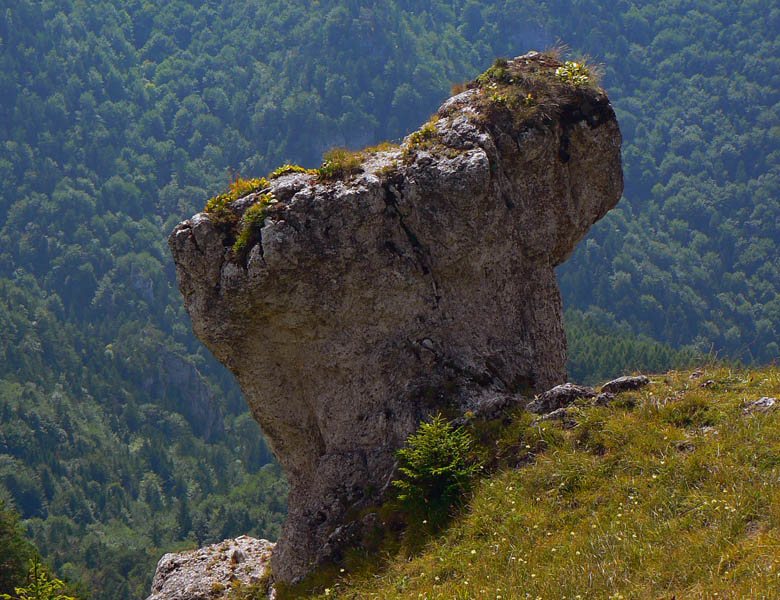 Pod sedlom Misa sklon už menší, chodník lezie z lesa a nad sedlom sa otvárajú výhľady – najmä dozadu na hlavný hrebeň. Zadná Ostrá už je na skok, kľučkovaním pomedzi bralká a stromy. A z nej hrebeň, ostrý ako britva, na tú hlavnú Ostrú (1247m). Na záver výstupu spestrenie – schody ako do neba, pár metrov reťazí a prielez skalným oknom. A zhora rozhľad: rovných 360! Len ľudí je tu vždy ako hadov.