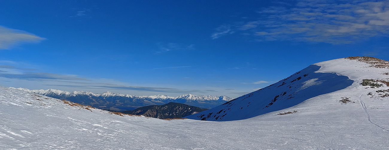 Len o kúsok vyššie „od úpätia“ sa vďaka rúbaniskám a priesekom zjazdoviek začali otvárať tie notoricky známe panoramatické výhľady – žiaľ teraz najmä na okolitú snehovú biedu. Dominovali tmavé farby a v diaľke na juhu Klenovský Vepor. Podklad mimo pisty sa zdal byť pevný, ale kto si trúfal vyskočiť z lyží, hneď bol po kolená zapadnutý do mokroty.