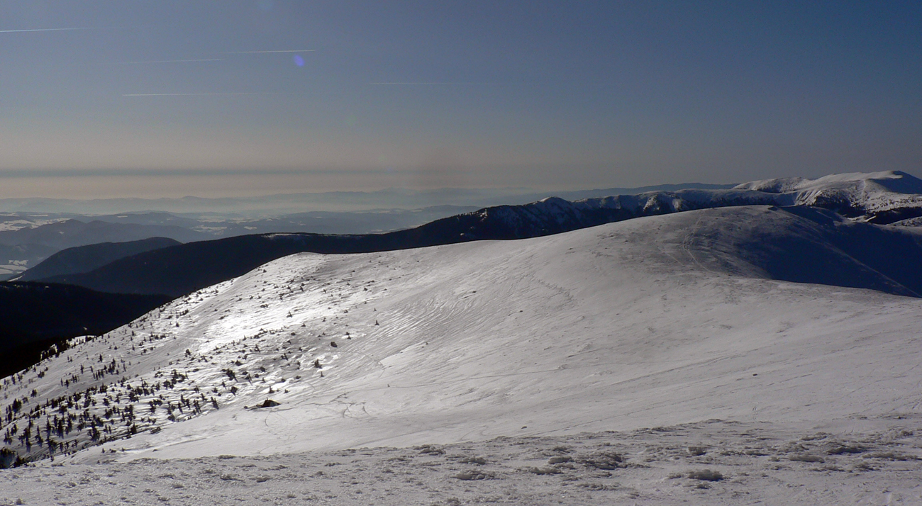 V polovici februára keď príde jar, to dúfam že nie je ešte posledné slovo, čo zima povedala. Ale dole sa teploty šplhajú nad desinu, tak treba vyššie vyliezť, som si povedal. Ale zas nie príliš, aby ten betón na slnku cez deň trochu povolil. Na to je tento kus hrebeňa priam ideálny, lebo chodník je otočený čiastočne na juh. A na Chopku hlásili cez deň +2 a takmer bezvetrie.