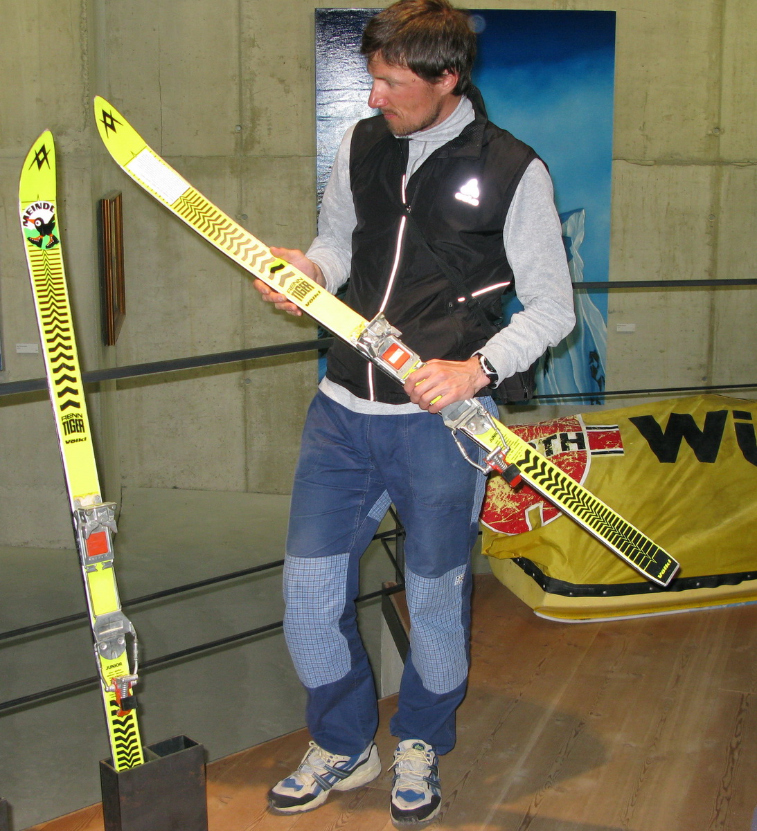 Pričom viacerí extrémny lyžiari pri svojich výkonoch musia najprv vyliezť stenou hore, v zime a neraz aj v rekordnom čase. Napríklad taký Toni Valeruz potreboval na výstup SV stenou Gran Vernelu (Dolomity) a na následný zjazd 1000 v.m. vysokou stenou 5 hodín!