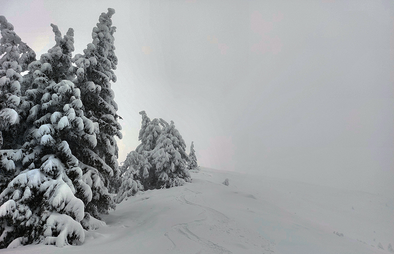 Vynorenie do Južného Rakytovského sedla bolo zároveň ponorením do poriadneho mlieka. Stopa nikde, brázda za lyžami ostávala hlboká, ďalšie spomalenie. Ale veď keď nestihnem Tureckú, aj spod Ploskej do Revúc sa dá stočiť. Pohodka. Lenže vpredu neviditeľný traverz riedkolesom poza Žiare, a tam nastala po dlhšom čase ďalšia improvizácia. Lebo sneh poohýbal miestne jarabiny do nepriechodna. Tak obchádzky vrchom, spodom, kadejako. No ďaleko som nedošiel.