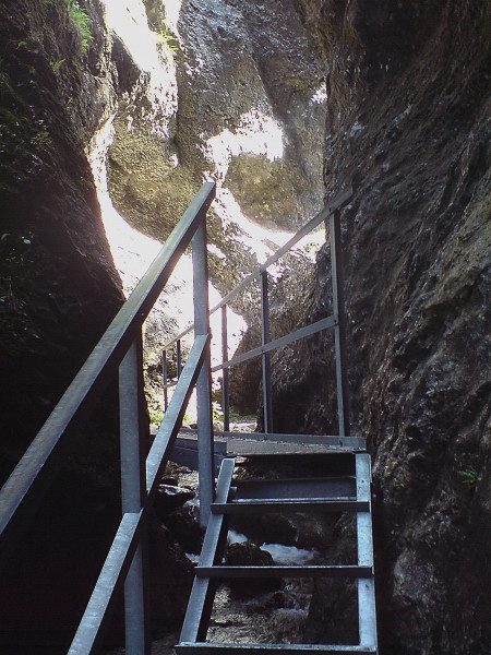 Mostík, lesná cesta, zrazu skalky. Celá dolina sa zrazu pritisne tesne na chodník, voda si vymyla svoj chodník, ten turistický vybetónovali dobré duše. Aj mostíky a ich upevnenia sem neprišli len tak, ale na chrbte človeka. Kaskády, meandre, vodopádiky, a rebríky ponad ne. Zaujímavé a nenáročné, deti vítané. Ale fakt treba prísť skôr, inak rátajte so zdržaním na mostíkoch a rebríkoch, sú to jednosmerky.V roku 2009 boli mostíky a rebríky vymenené.