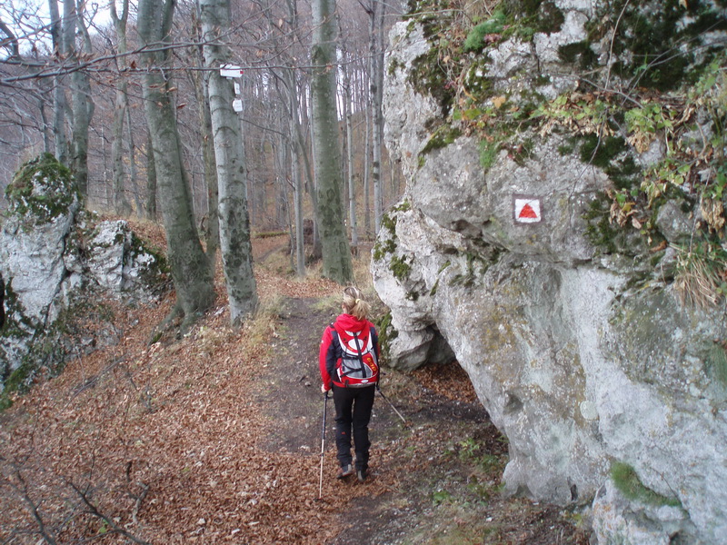 Začíname v Sklabinskom Podzámku, odkiaľ nás na Katovu skalu (895 m n.m.) dovedie červená značka. Na hornom konci dediny zabočíme vľavo a popri novostavbe začneme stúpať lúkou k lesu. Tu sa chodník stočí doprava, je troška strmší, ale po chvíli sa položí. Bukovým lesom sa chodník krúti ako had. Takto nás dovedie k prvým skalným útvarom. Terén začne byť strmší, ale chodník vytvára serpentíny, ktoré nás dovedú až na hrebeň. Tesne pod ním sa láme jedna serpentína pár metrov od skalnej veže, pod ktorou je malá jaskyňa.