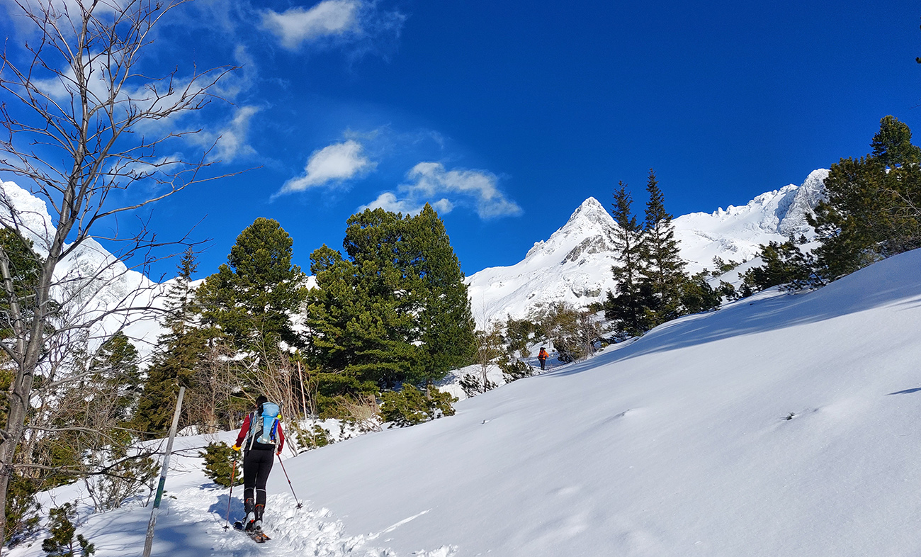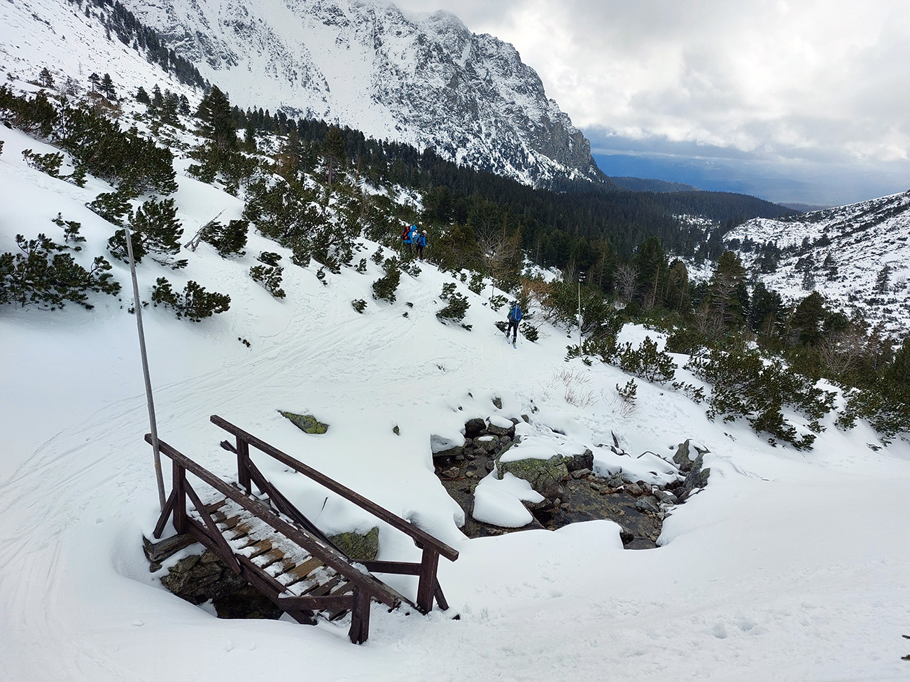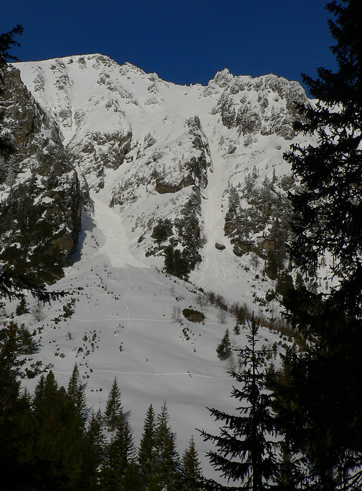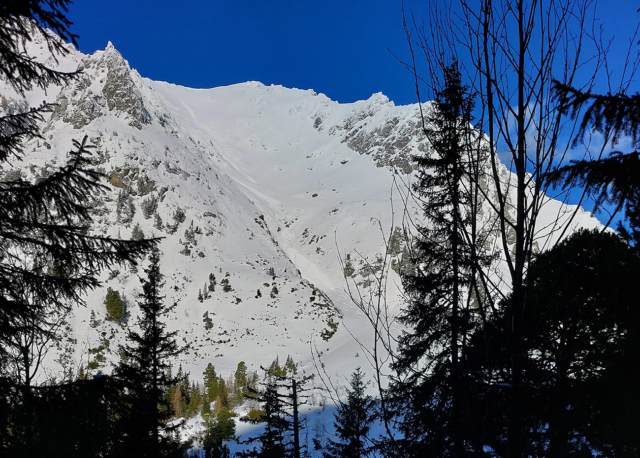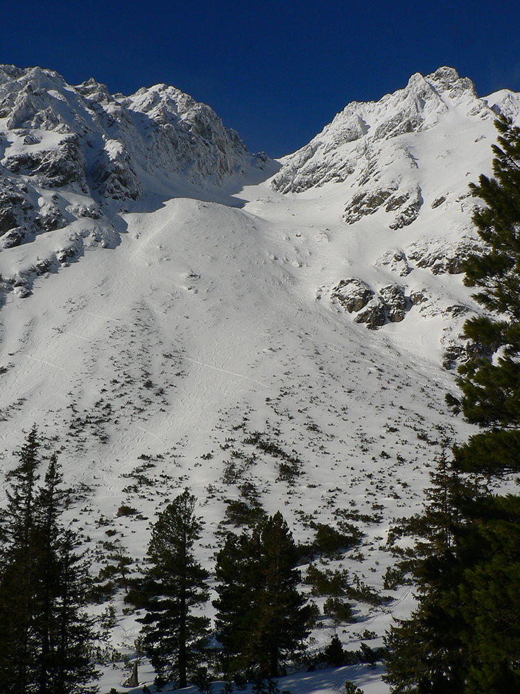 Táto superteplá zima núti ísť za snehom stále vyššie, ale stále sa dá nájsť aj ten dobrý. Tatry sú záchrana a teraz po prepršanom piatku a čiastočne aj sobote (aj vo výške Štrbského plesa) prišla jasná noc, tak sme ráno naskakovali do lyží pod Triganom (smer Popradské pleso) na betónový, viac hnedý ako biely, a poriadne hlučný podklad. Ale stále sa dá od smerovníka pri ceste. Zimný chodník (najmä zjazdík spod Triganu) ľadový, utrpenie pre pásy. Kúsok po ceste na Popradské ples – čistý ľad. Rachot spod lyží sa začal konečne zmierňovať až pri stúpaní lesom do Mengusovskej. A začali sa otvárať aj pohľady na čerstvé a poriadne veľké splazy až malé lavínky pod Patriou. Ktoré sa ale nedoplazili až na letný chodník, tak vyzeral byť bezpečný. Čo mohlo a malo, hádam už spadlo: