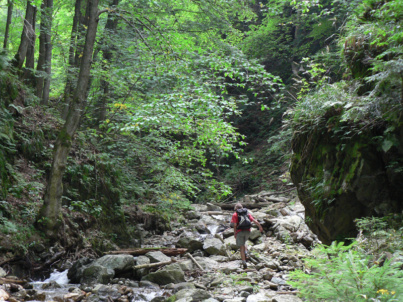 Nám cesta trvala takmer tri hodiny a že sa blížime ku koncu, to nám pripomínalo stále viac odpadkov v koryte. Celá trasa výstupu pripomína rokliny Slovenského Raja a navodzuje otázku, prečo si takýto krásny kút prírody nezaslúži niektorý z vyšších stupňov ochrany. Napríklad holoruby na strmých svahoch v dolnej časti vyzerajú dosť hnusne a viem si predstaviť, čo sa z nich valí do potoka pri takom dobrom letnom lejaku.