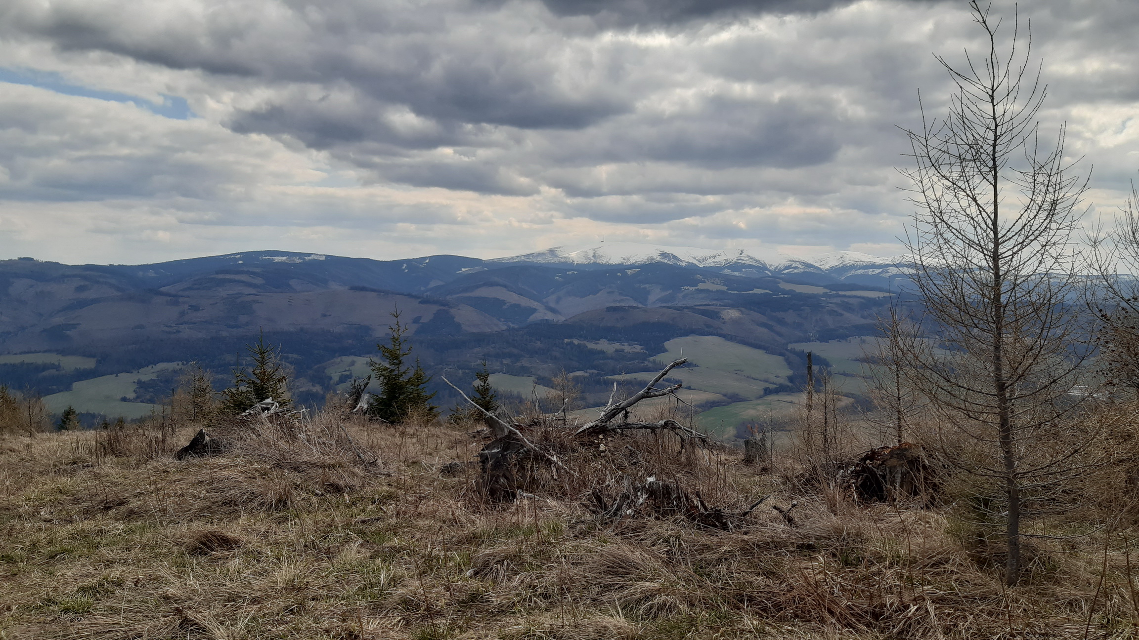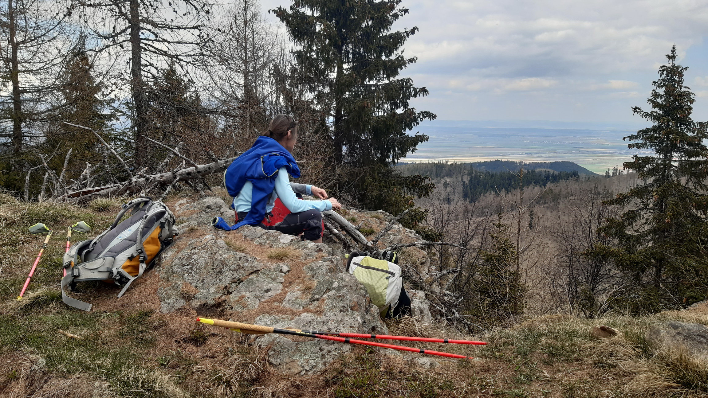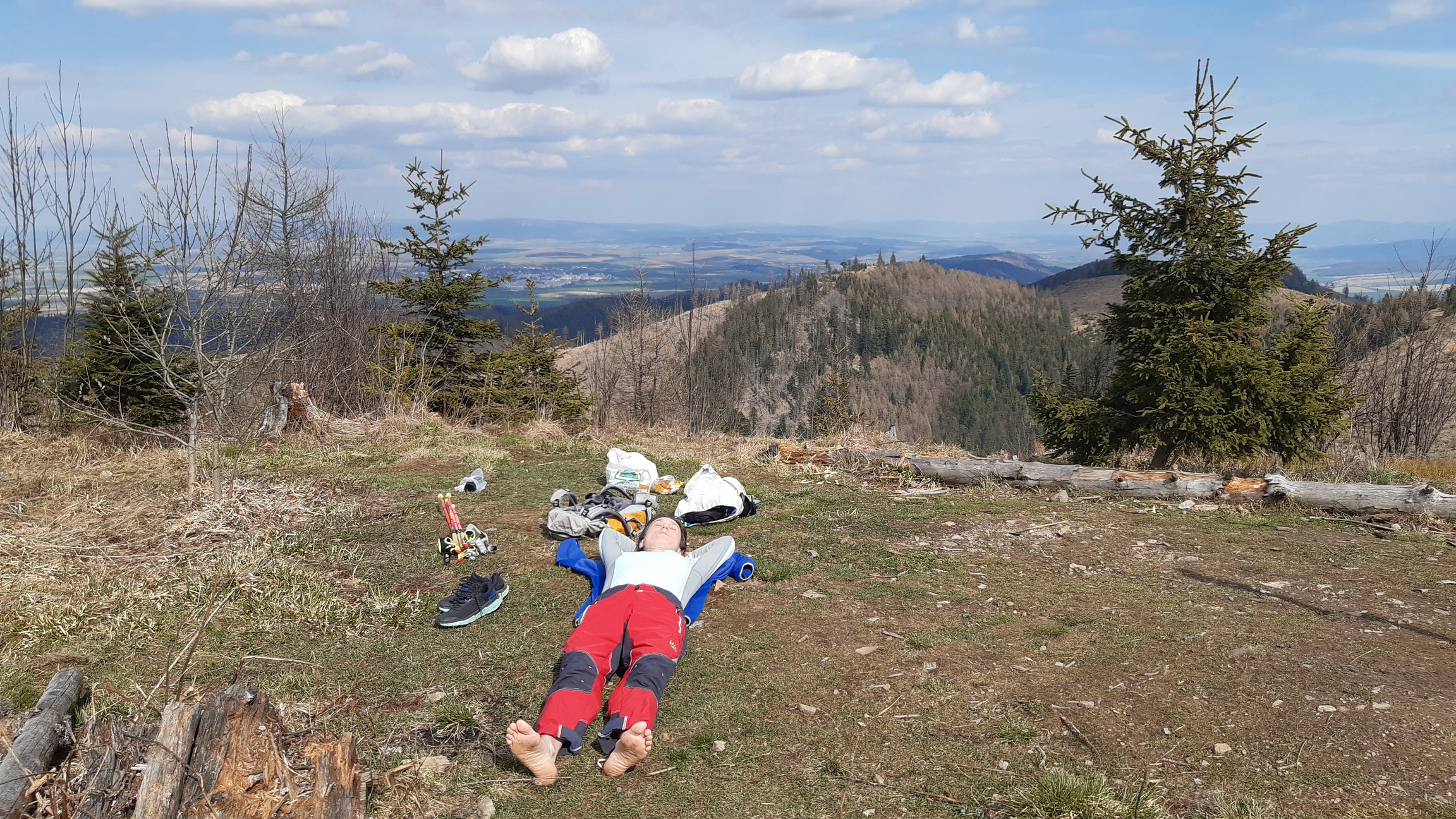 Miestami už stromčekami zarastajúca hrebeňová cesta končíe až na Krížovom vrchu. S dvojkrížom čuduj sa svete. Výhľady stále zajebisté, len my, čo tu chodíme už roky badáme ako mladina naberá na výške. Vy čo by ste chceli ešte zažiť výhľady na Tatry v plnej paráde tak máte ešte pár rokov a potom na nejaký čas bude zase šmitec. Bude treba čakať na ďalšiu kalamitu a to môže trvať. Nové lesy už budú viac premiešané ako tie minulé a tak verím, že aj odolnejšie.