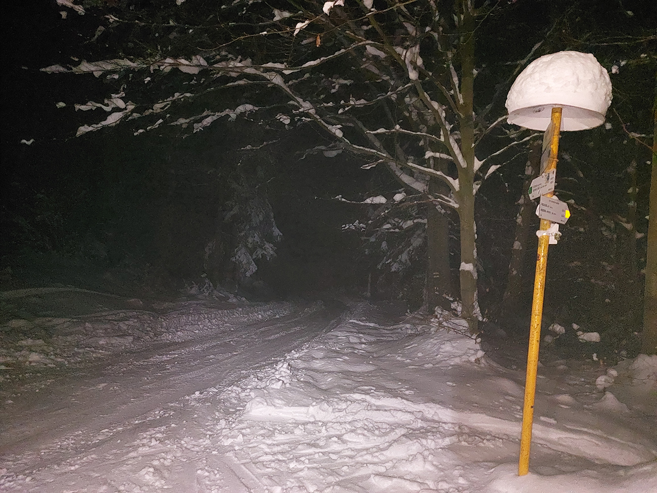 No kedy sa má poctivý robotný ľud v týždni dostať na pásy? Len po robote. Takže teraz rovná sa za tmy. Ale „na tri krále o krok dále“, tak aspoň časť výšľapov za vidna sa zadarila, lebo štart z domu po tretej a do lyží skok o pol štvrtej, dajme tomu. V oboch prípadoch, len ten Lysec bol ešte pri -10 stupňoch a jasnej oblohe, pri výstupe na chatu pod Chlebom (lebo vyššie sme nešli) už popŕchalo a zahmlievalo. A každý, komu som sa pochválil, hneď sa pýtal, či sa to dá zlyžovať a či trčia kamene a či sa dá od parkoviska (DÁ!!!) a také tie klasické oné... A to som si myslel, že tam už všetci boli. No zjavne len polovica, tak tu je pre tú druhú polovicu pár fotiek a jednoduchý report o stave podkladu. Na ktorý sme síce moc nevideli (lebo čelovky), ale niekomu to možno pomôže. V oboch prípadoch je snehu tak dosť, že pri výstupe už netreba moc pod nohy pozerať, dôležité pre zdravie chlpatých lyží je to smerom dole. A dôležité ešte je aj to, že sme pod Chlebom obnovili tradíciu: