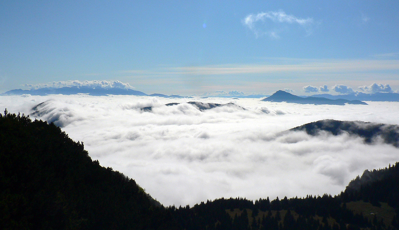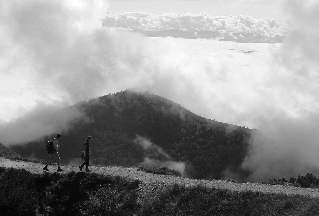 Neskôr hore na vrchole Malého Rozsutca príjemné teplo augustového slnka už vysušilo skaly, okolité kopce svietili v ostrom svetle vďaka vzduchu, prečistenému dažďom. Doliny a kotliny v okolí ešte utopené v bielej perine, z ktorej trčali len najvyššie kopce - iba Terchová a Vrátna dolina ako zázrakom čisté svietili zdola.