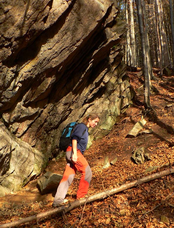 Koniec novembra 2009 bol na horách nezvyčajne teplý, zato v doline ako v práčovni. Takže to chcelo čím rýchlejšie a čím skôr na nejaký vyšší kopec. Zvolili sme východnú časť hrebeňa krivánskej Malej Fatry medzi Chlebom a Stohom, kam sa dá relatívne rýchlo „vyplaziť“ od Šútovského vodopádu. Od zastávky v Šútove – Rieke je to k vodopádu pohodlná hodinka aj niečo (podrobnejší popis je v článku o vodopáde). Odtiaľ na Mojžišove pramene riadne strmým stúpaním bučinou tiež asi hodinu a ďalších asi 30 minút na vrchol stúpania, na začiatok pohodlného traverzu popod hlavný hrebeň. Časy udávam preto, lebo oproti mape sú o dosť kratšie, pritom sme išli pomaličky, pohodovo. Slnko začalo prerážať hmlu už dolu v doline, nad lesom bol ale úplne iný svet. Rozdiel v teplote aspoň 10 stupňov a na hrebeni takmer bezvetrie. Bez problémov na tričko a kraťasy.