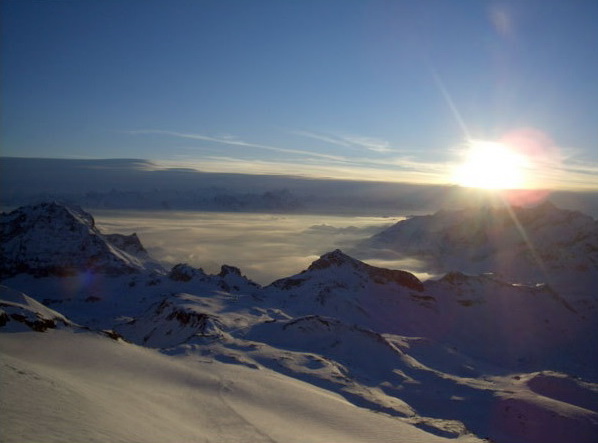 Do Zermattu som prišiel údolím lebo prechod cez Zwischenbergpass (3434) do Saas Fee nebol možný. Dve hodiny dobrého počasia na Theodulpasse mi umožnili spraviť aspoň odbočku na Breithorn a tak sa mi podarilo vystúpiť aspoň na jednu štvortisícovku. V oblasti Mont Blanku ma zastihlo zlé počasie a tak som bohužiaľ nielen že naňho nemohol vystúpiť ale som ho ani raz nezazrel...