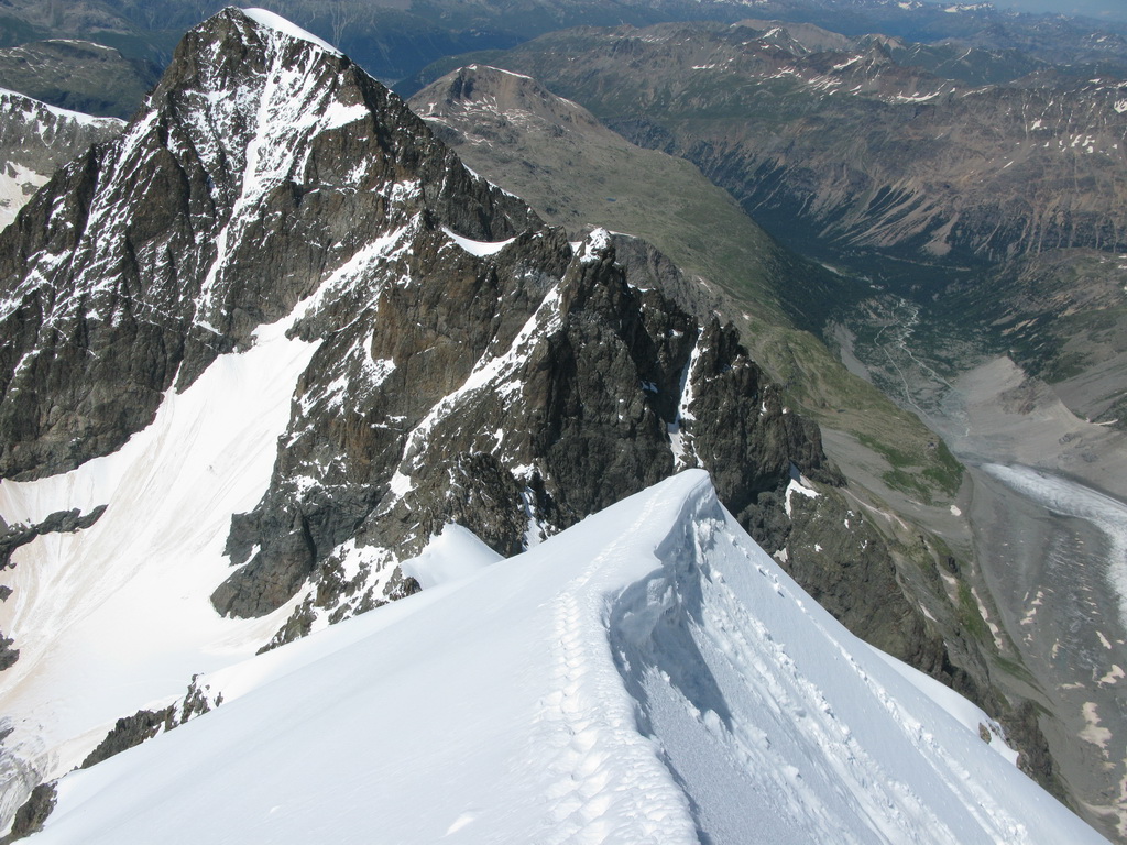 Biancograt - táto obľúbená túra bude túto sezónu ešte viac vyhľadávanejšia. Výstup na Matterhorn totiž značne skomplikuje kôli prestavbe zatvorená Hornli hutte. Toľko mi prezradil jeden známy horský vodca. Po dllhom období dažďa sa v posledných dňoch konečne vyčasilo a tak som dnes využil výborné počasie a bol som sa pozrieť aké sú podmienky na Biancograte. Túto túru totiž značne ovplyvňujú snehové podmienky a tak dokáže byť zakaždým úplne iná. Nebolo tomu ináč ani dnes. Snehové podmienky sú výborné. V stúpaní do sedla Prievlusa je veľa snehu, okrajová trhlina zasypaná, na Biancograte žiadny vodný ľad a aj cez záverečný kľúčový hrebeň som sa dostal v pohode. Viacej už z fotiek.