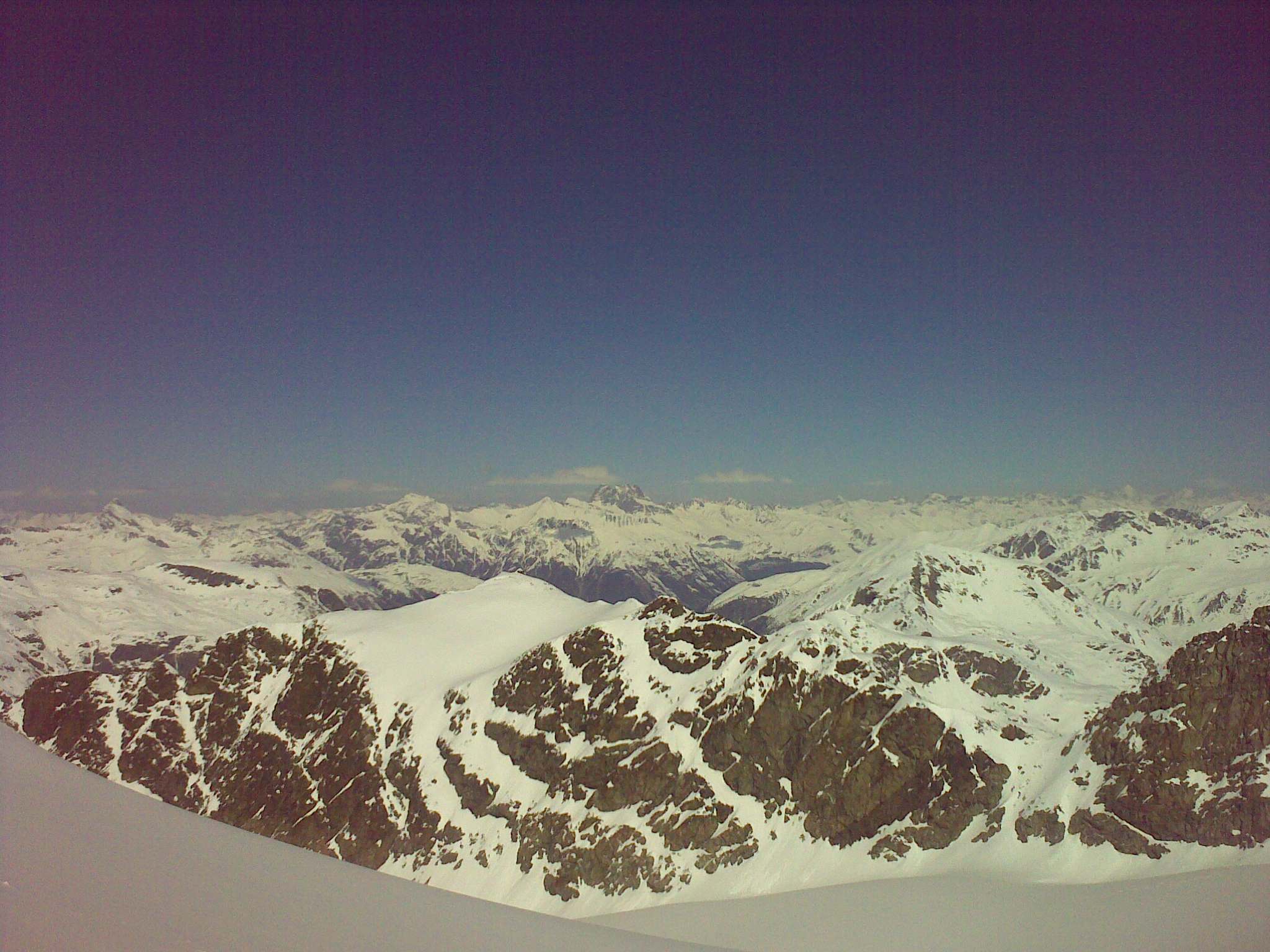 V Engadine panuje už niekoľko dní skoro letné počasie... V Pontresine, ktorá je cca 1800 m.n.m. sa teploty šplhajú k 20°C. Bežkárske trate sú v dezolátnom stave, ak ešte nejaké sú, a väčšinu turistov, ktorých nebaví jarné lyžovanie, už vidieť na horských bicykloch. Keď sa presunieme do údolia Val Roseg, tam je ešte poznať, že zima ešte neskončila. Snehu je dosť, teploty večer klesajú pod nulu, ale popoludní je tiež horúco a všetko sa z okolitých prudkých svahov sype dole. Preto všetky skialpové aktivity treba riešiť zavčasu ráno a maximálne okolo obeda už sedieť niekde v bezpečí chaty.