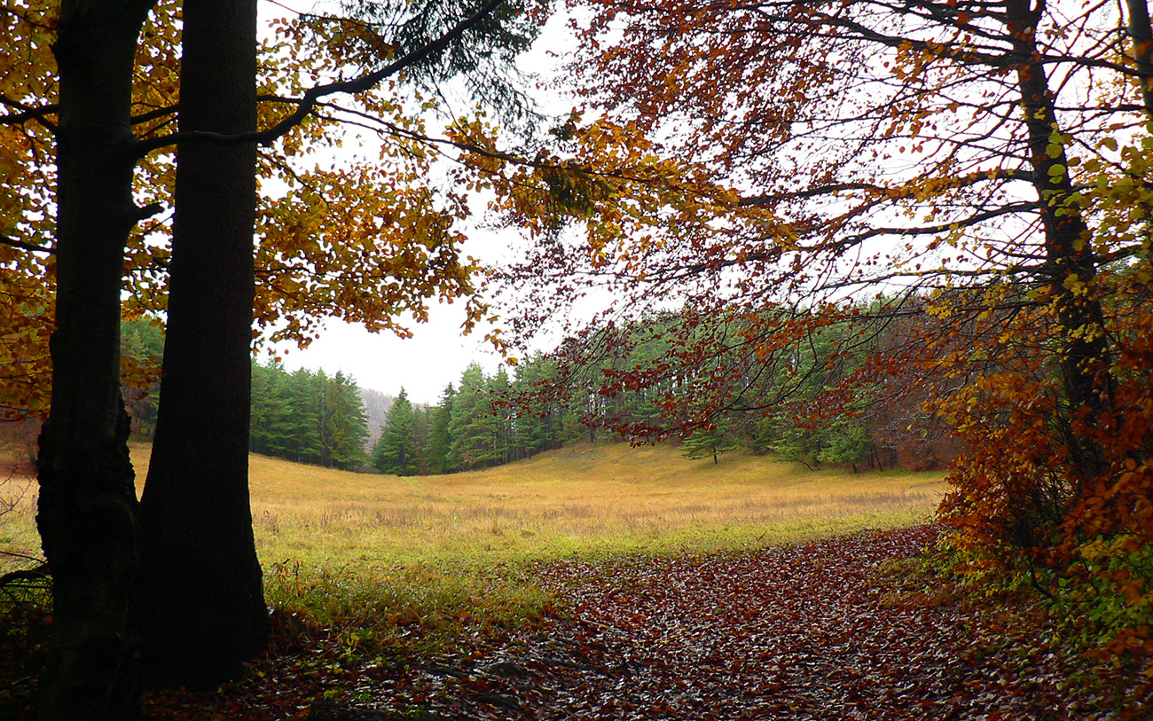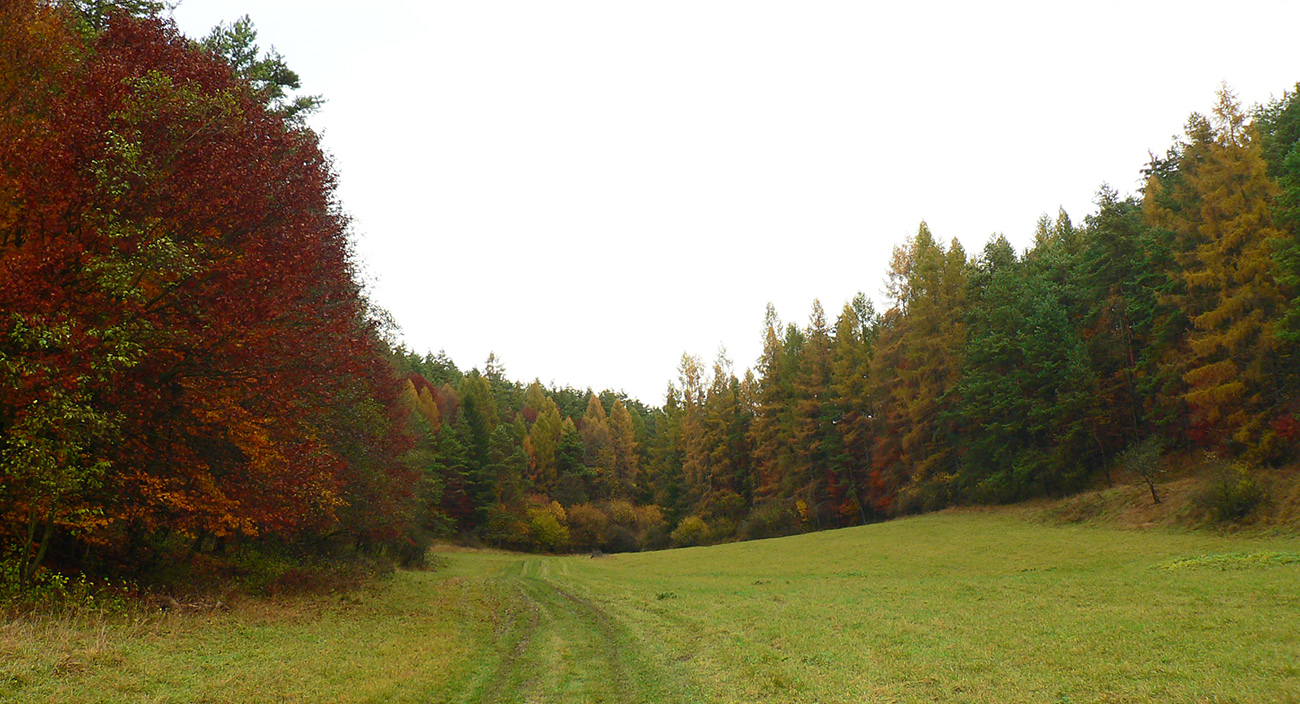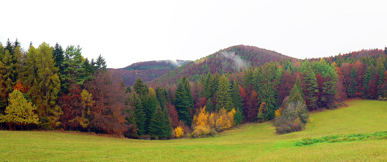 Piatok, večer pred celoslovenským testovaním, zvoní telefón: „Nezavezieš ma do Rudna? Tam ma pridelili do tímu. Ale musím tam byť v sobotu už pred šiestou.“ Hovorím, že samozrejme, ak mi doma auto požičajú. Požičali - no nemohol som si predsa nechať ujsť možnosť legálne sa dostať do susedného okresu! Aj keď len do toho turčianskoteplického :-) Improvizačné bunky v mozgu hneď začali pracovať, ako by som situáciu využil. Lebo síce červenú značku severom pohoria Žiar dobre poznám, ale v tých miestach medzi Závozmi a Vyšehradom je aj mimo značiek veľmi pestrá krajinka - taká mozaika lúk a lesov. A tú sa počas farebnej jesene oplatí poobzerať. Ciest je tam požehnane a kde nebudú, nejako prerazím. Takto pekne nás korona učí prispôsobovať sa. Takže vznikla z toho taká „osmička“ so stredom v doline Rudnianskeho potoka – najskôr som spravil menší okruh na juh od Rudna ponad Jasenovo, potom väčší, na sever cez Brieštie a Hadvigu. Prvé kolečko „zveroodpudivé“, druhé jesenno plnofarebné: