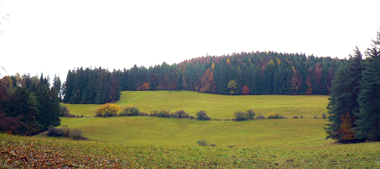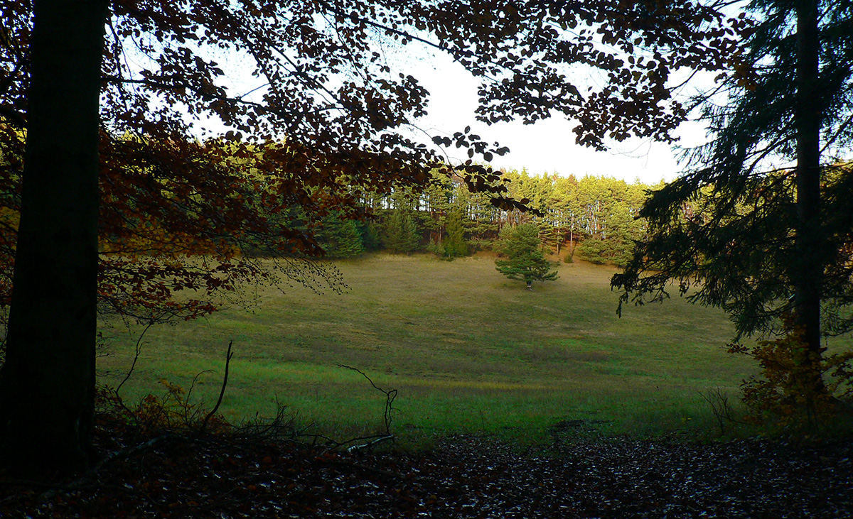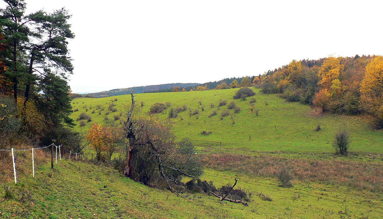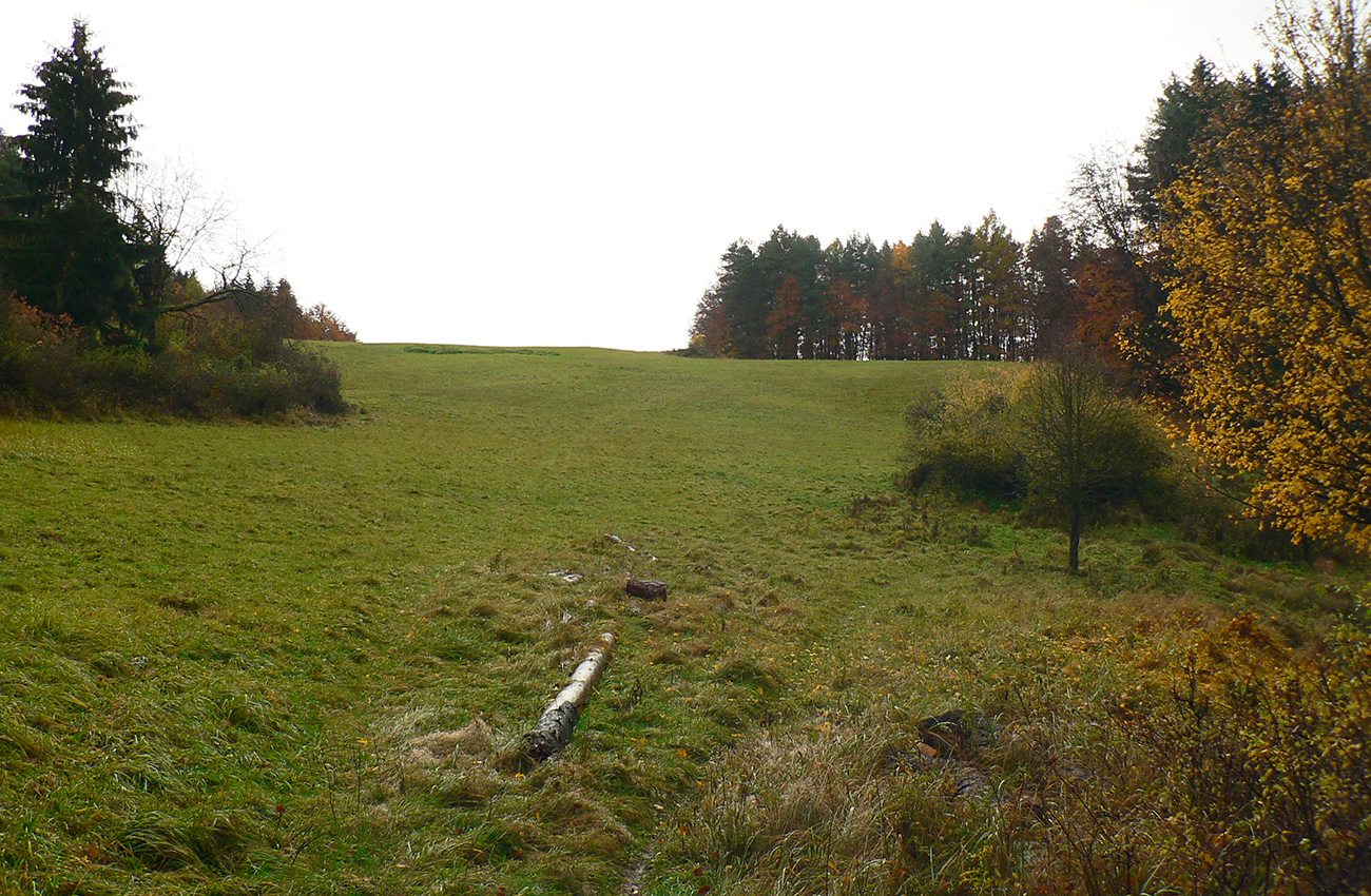 Najprv dlhá úzka lúka dolinou, potom ešte užší priechod pomedzi lesíky a rooooozľahlé lúky. Držiac sa okraja lesa pri ľavej ruke som to nasmeroval priamo na sever, na horizont. Cesta hore lúkami ma viedla jednoznačne. Z horizontu sa okrem tej mojej rozbieha ďalších päť ciest, ale to už som videl, ktorou sa mám spustiť nazad do doliny Rudnianskeho potoka a aj kade potom z doliny odbočiť do začiatku „severnej časti osmičky“. Takže bol čas na malý prieskum dvoch najlepšie vyzerajúcich ciest - doľava, do kopca: