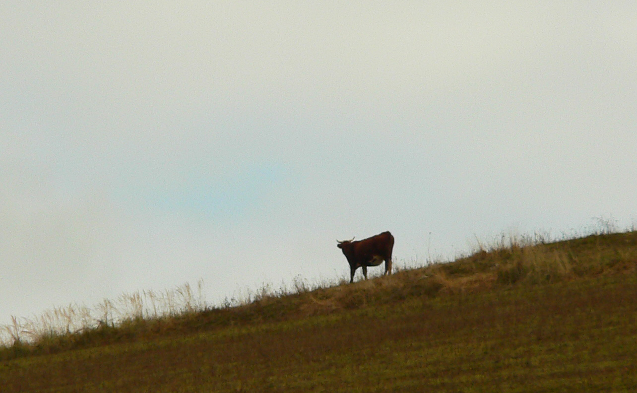 Taaak, vykochaný výhľadmi spustil som sa do doliny a cez protiľahlý horizont som preskočil do susednej, v ktorej už sa krčí Hadviga. Ale až do nej som zdola nedošiel, dám si ju neskôr, zhora. Teraz som odbočil po cyklotrase do Brieštia, zas cez pekné pasienky s voľne rozhodenými kravami. Nasadil som náhubok, aby som hore dedinou neprovokoval miestnych, a peknou lesnou cestou (stále tá cyklotrasa) som vydupal na Repeš – na ďalšiu z tunajších veľkých horských lúk s parádnou chalupou hneď pri východe z lesa, priamo pod Závozmi. Ešte krátka zachádzka za výhľadmi (k Veľkej Fatre a najvyšším kopcom Žiaru) na susednú (ako inak) velikúúú lúku. Cvak cvak a išlo sa nazad, a zas červená „hrebeňovka Žiaru“.