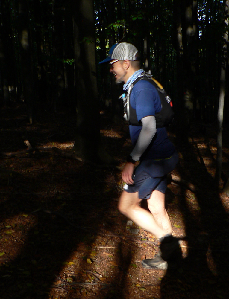 K2 pod vysielačom už nebolo možné prehliadnuť (ako vlani v hmle) a to bola tiež myslím novinka – 100 m pred každou kontrolou bola ceduľa. Niekde pod Vtáčnikom pre mňa (ako vlani) skončilo behanie a začalo plazenie. Telo mi jasne povedalo, čo si o nasadenom tempe myslí. No dobre, tak reku idem pomaly a vychutnám si to. Výhoda: čím pomalší beh, tým viac fotiek. Lenže ani pomaly už to o chvíľu nešlo, a to začal byť problém a taký ostal až do konca. Toľko výhovorky.