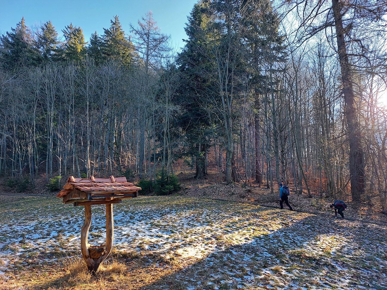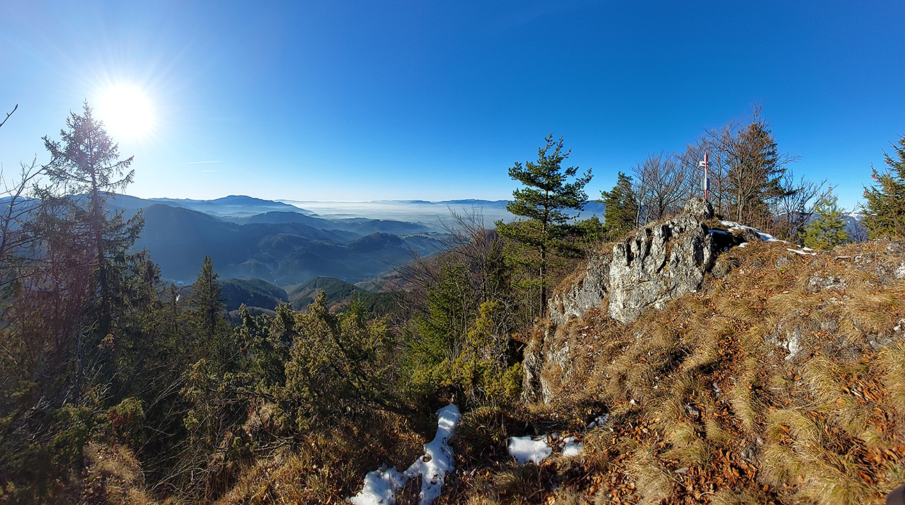 V dedine ešte pár výškových na Baštu – oplatilo sa, lebo okrem Fatry sa otvoril pohľadom aj na sever kotliny, jemne rozostrený riedkym inverzným závojom a nízkym popoludňajším slnkom. A za chrbtami nám spomedzi Vrchdielu a Smrekového vykúkala Prieložnica. Fajné kolečko to bolo, aj počasie! Síce stretnúť koncom decembra v lese na prechádzke medveďa a salamandru, to nie je veľmi s meteorologickým poriadkom, no čo už...