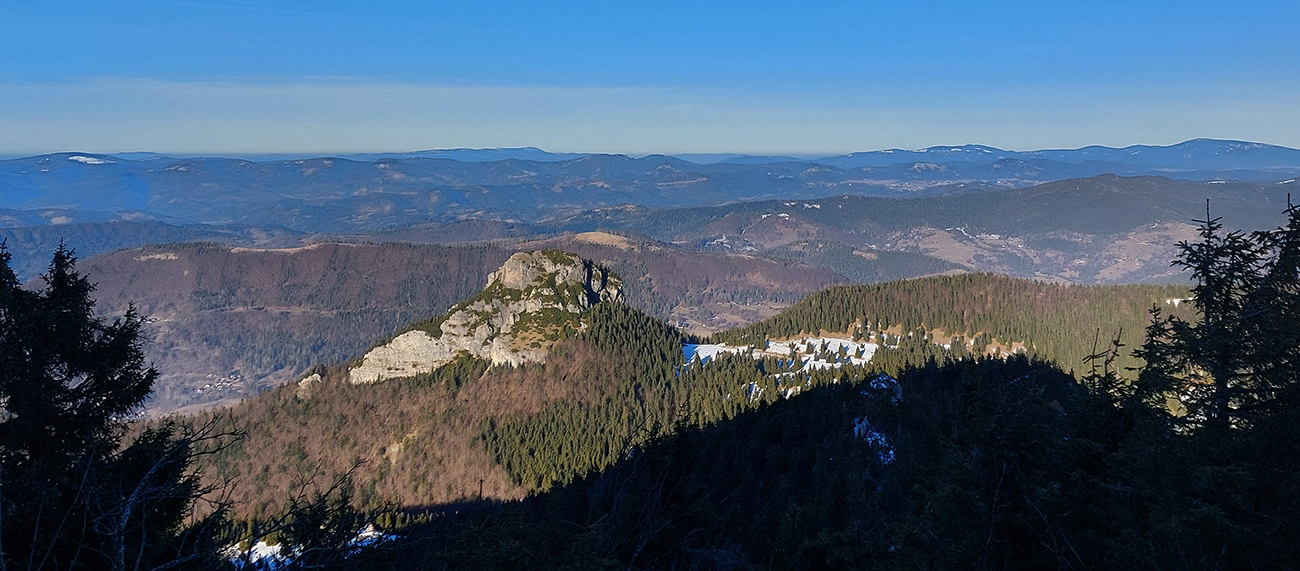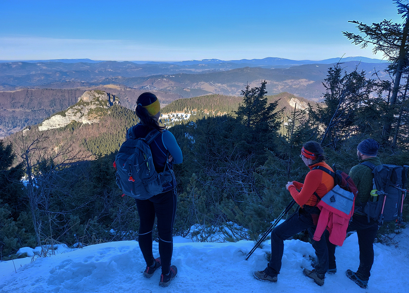 Strmina hore lesom pod Malý Rozsutec je spestrená početnými skalnými vežami a bralami – ale najmä niekoľkými vyhliadkovými plošinkami pre upokojenie pľúc a potechu očí. K Veľkému Rozsutcu sa stále odvážnejšie pridáva Stoh a na východe nesmelo vystrkuje svoj nos Choč. Svieti aj guľa meteoradaru na Kubínke: