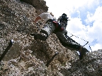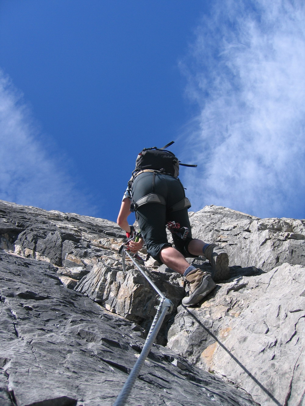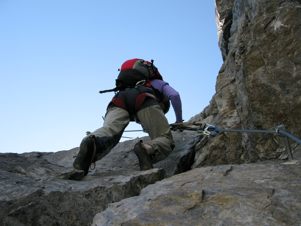 Sedačku som si požičal od kamarátov z horskej služby, keďže moju som zabudol doma a hurá na feratu. Mal som za sebou už zopár ferát v Dolomitoch a tak som bol zvedavý, že čo to bude zač- tá slávna ferata. Mal som tak trochu aj rešpekt, doteraz moja najťažšia ferata Cezare Piazetta na piz Boe ma preverila po všetkých stránkach a moje netrénované ruky ma veru dosť boleli, ako som si zaháknutý o oceľové lano prepínal moju jedinú smyčku. Tentoraz som si radšej zobral dve. Dosť sa stresujem v robote, ešte aby som sa stresoval aj cez voľno. Začiatkom leta sa na ferate stala jedna smrteľná nehoda, keď jeden starší turista sa ju rozhodol zdolať bez výstroje, len tak s holými rukami... Výsledok bol, že spadol ešte pred najťažším miestom a nasledoval dvestometrový pád.