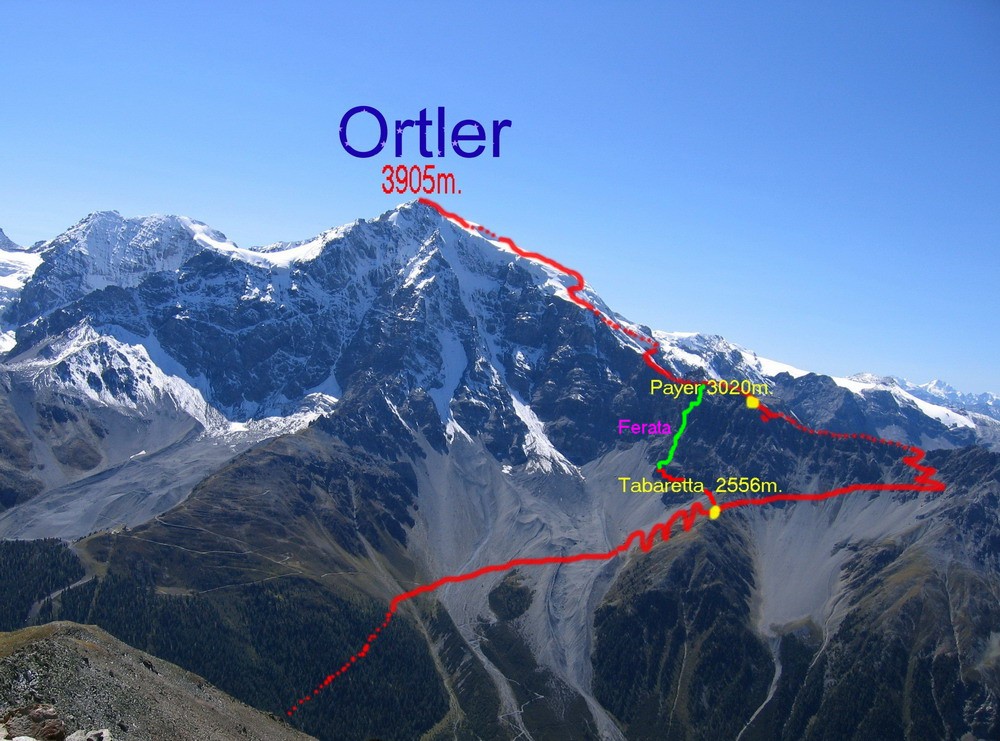 PREVÝŠENIE: Samotná ferrata má cca 450 výškových metrov a výškový rozdiel medzi Payerkou a Suldenom je 1100 metrov.