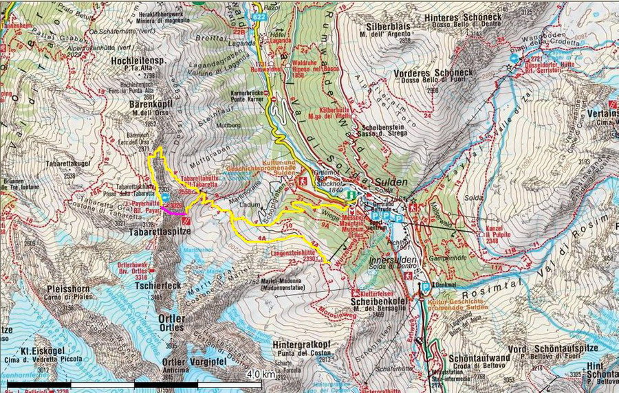 PRÍSTUP: Zo Slovenska je najlepší prístup po diaľnici cez Innsbruck, v Landecku odbočiť na Reschenpass, zísť dole do údolia Vinschgau a v Prade odbočiť smer passo Stelvio (Stilfserjoch), v dedinke Gomagoj odbočiť smer Sulden.