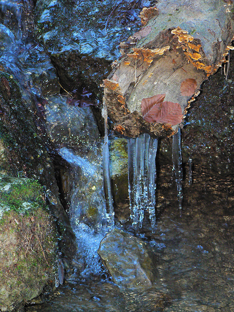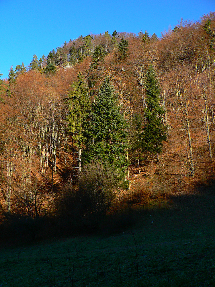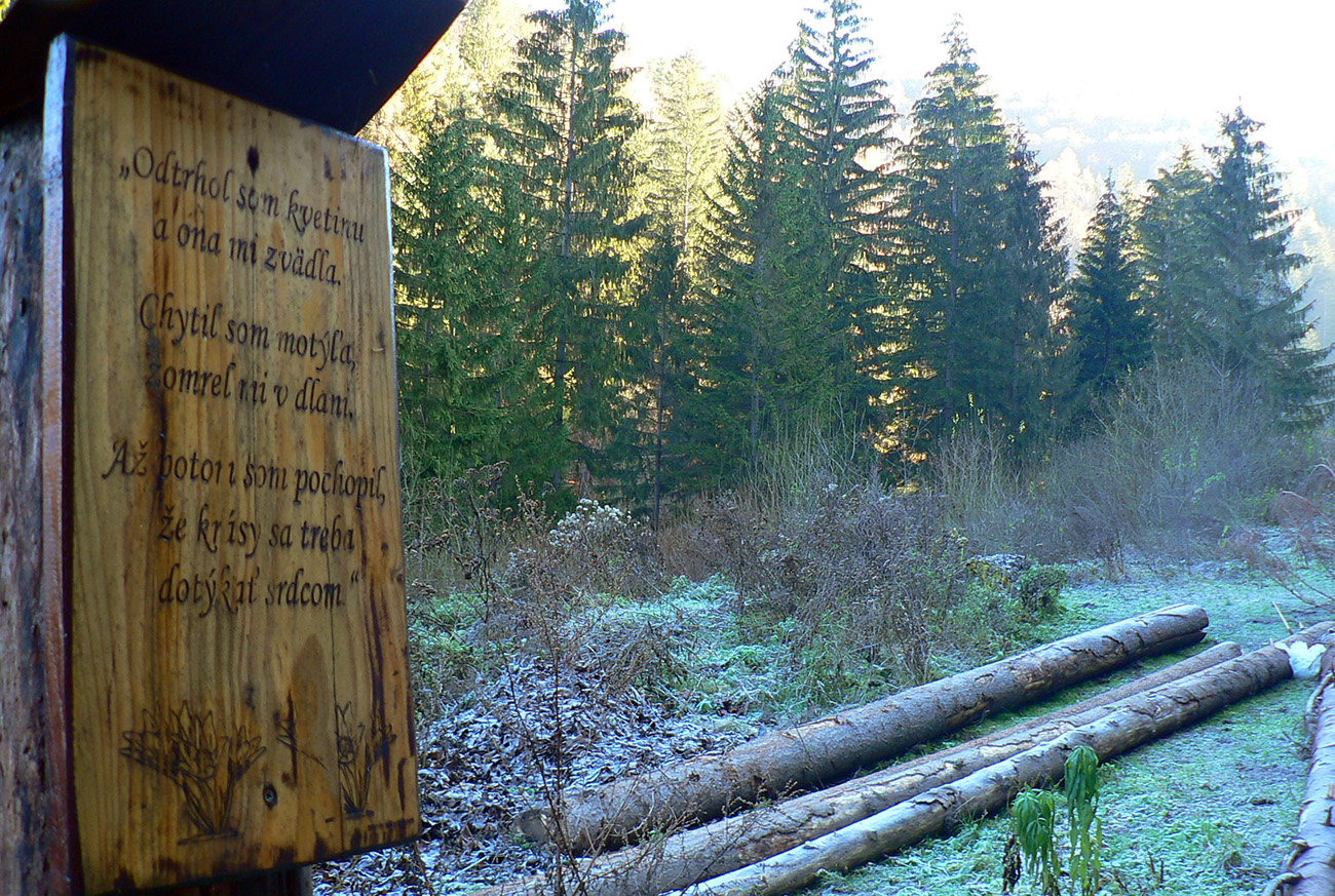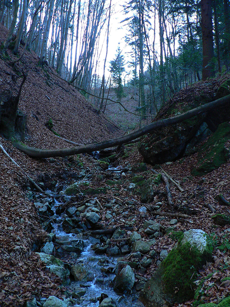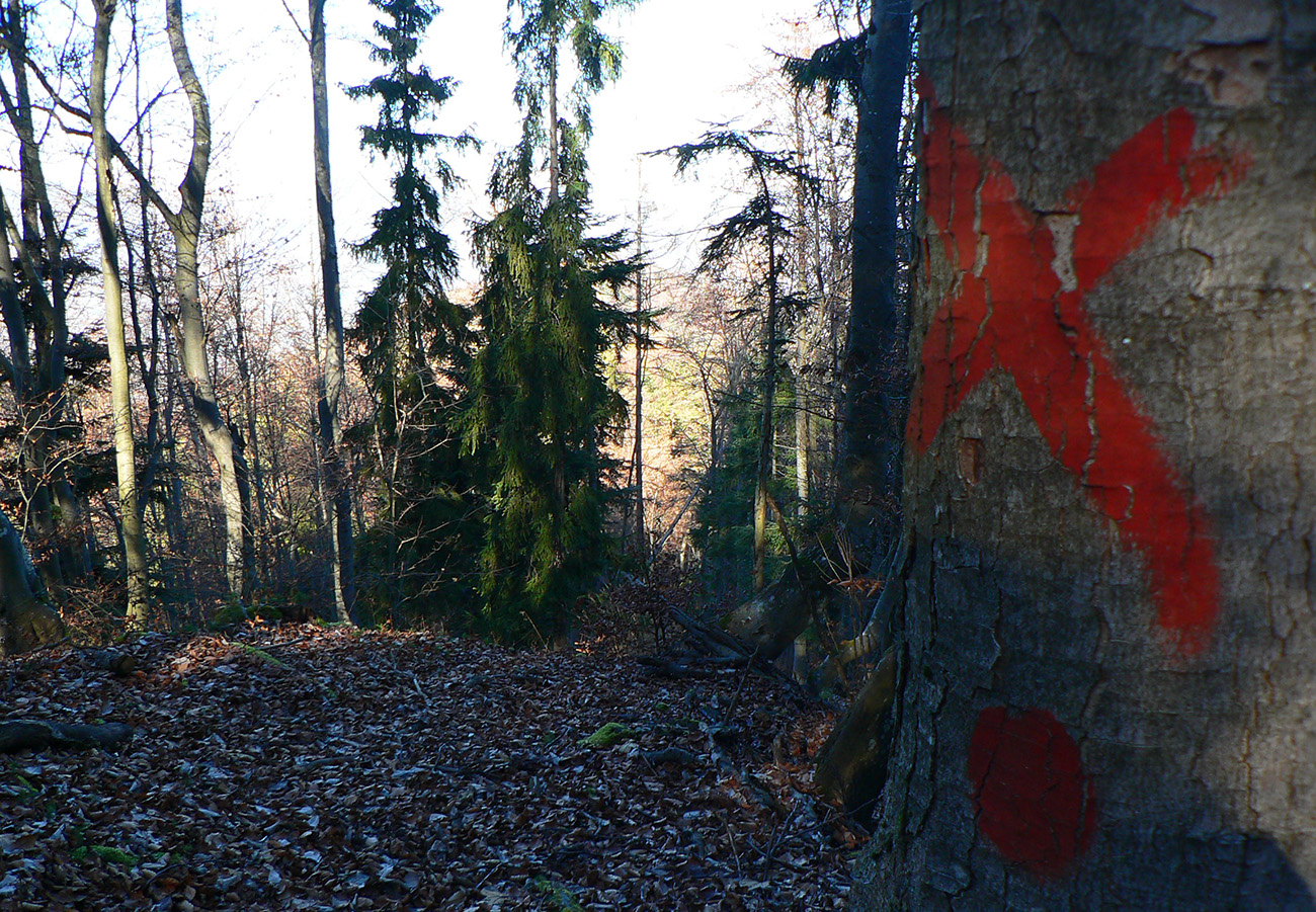 Takže: z dediny je to na Kľak jednoduché, po modrej. Len od konca asfaltky som dočasne tou modrou pohrdol a skúsil to priamo prielomom potoka. Práve preto, lebo v lete by som sa tu utopil v mori žihľavy a lopúchov. Teraz už bolo všetko zľahnuté a čerstvý nočný mráz aj blatá vysušil a podklad trochu spevnil. No, dalo sa, prielomček pekný, aj dáke bralká a jeden vodopádik – trpaslík, ale nič svetoborné.