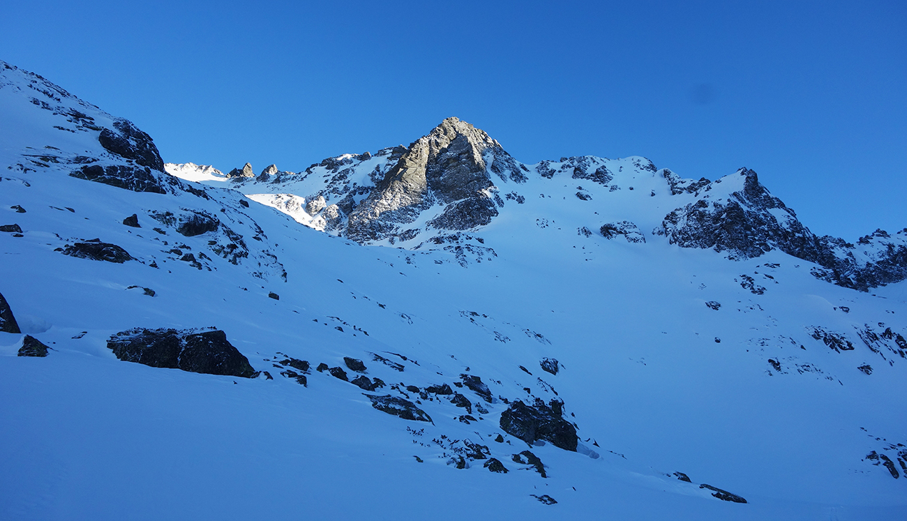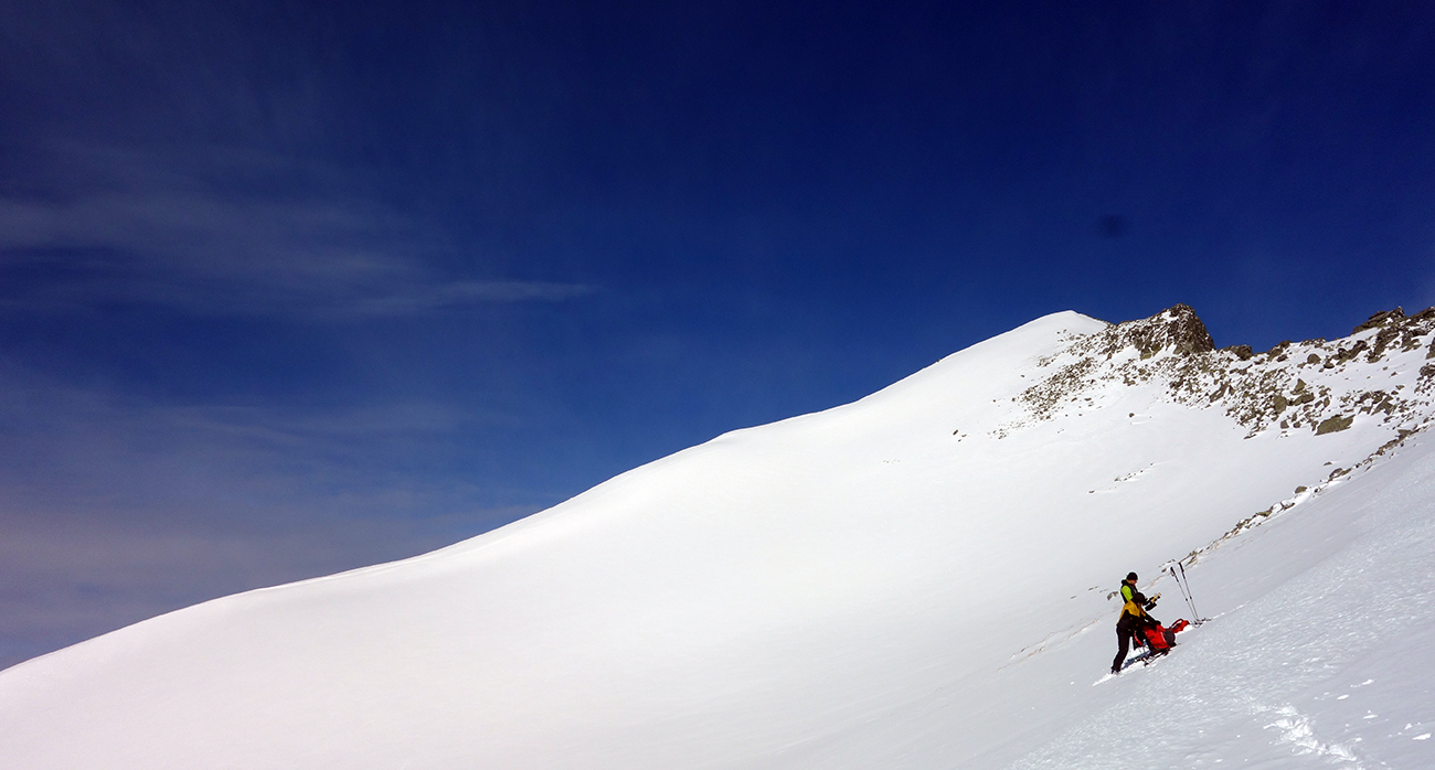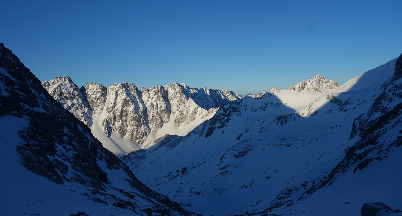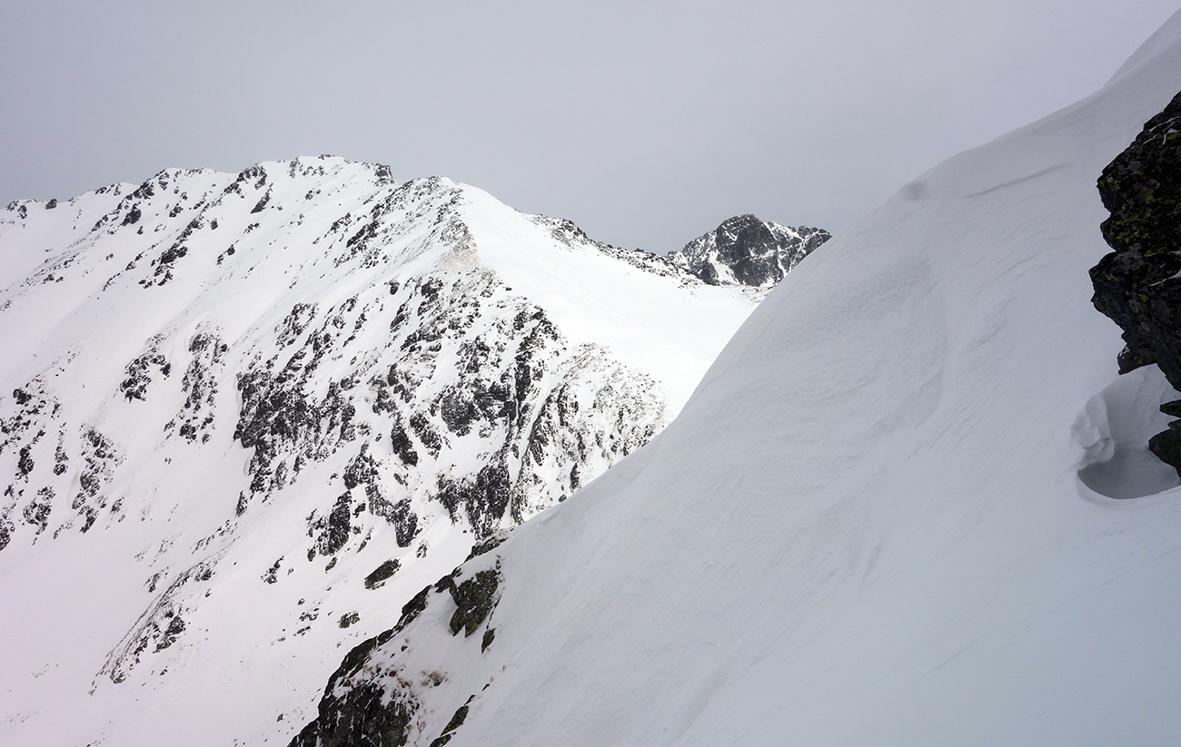 Sobota začína skvostne (azúro a takmer bezvetrie) a užívam si lyžovačku vyľudnenou dolinou. Rampa bezpečne zjazdná a od Žabích plies skvelá lyžovačka ufúkaným prašanom až k hotelu. Tentokrát bez občerstvenia, ale s vidinou výživného dňa nastavujem testovacie K2 Wayback 96-ky od Sportrysy na moje F1-ky. Vyrážame s Peťom Lichým a Robom Turjaníkom dolinou Mengusovskou a nechávame sa viesť čerstvou stopou až do Satanej dolinky. Pri Hincovom plese odbočujeme do Vyšného Kôprovského sedla. Chodník je tradične vyfúkaný až na kamenný podklad. Na chvíľu teda nasadzujeme mačky a lyže idú na batoh. V sedle výmena a moji 50+ parťáci neúnavne diktujú tempo a ťahajú stopu panenským svahom. V krásnom počasí dorazíme na snehový predvrchol. Vieme, čo nás čaká. Nenormálna lyžovačka v jemne sfúknutom púdri nemá chybu a doprajeme si dojazd až pod severku Štrbského štítu.