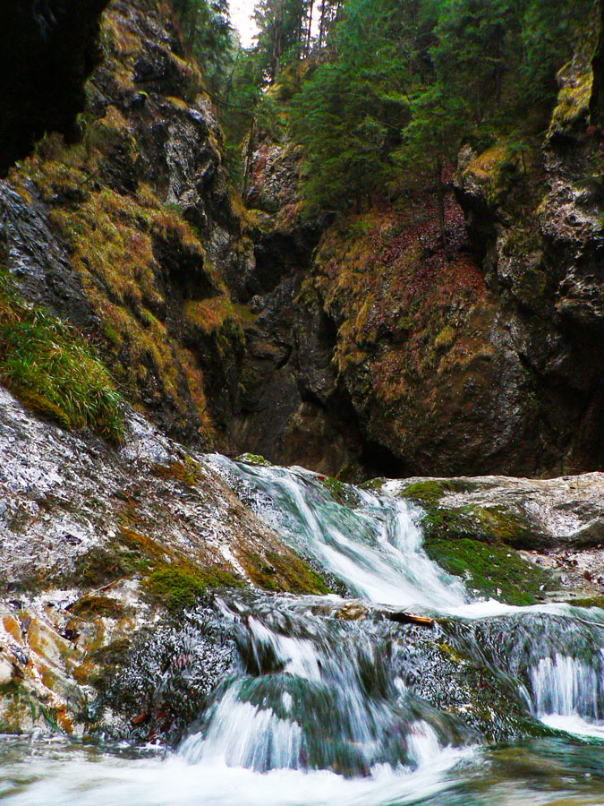 A z Podžiaru ma čakali najdlhšie, najstrmšie a na výzor najpestrejšie Horné diery. Dole poriadne úžiny, kaňony a obrie obrie hrnce - zopár takých úsekov sa strieda s rovinkami na vydýchanie. Potom širší úsek doliny medzi rázcestiami Pod Pálenicou a Pod Tesnou rizňou, kde už pomedzi stromy nad hlavou presvitá Malý Rozsutec. Záverečná Tesná rizňa je už trocha menej „bombastická“ - predsa len tu vyššie už má potok menej sily. Ale jej krása je v niečom inom, treba vidieť!
