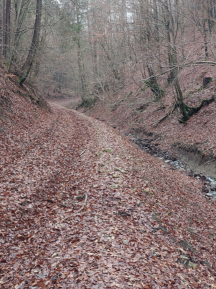 Južný obchvat Prieložnice, to bol ten najkrajší úsek – úzky, lístím zapadnutý, ale jednoznačný singlík takmer po vrstevnici, popod bralá. Ako som si jedno fotil, ani by som nebol zbadal, že ma pán domáci pozoruje. Až keď urazene sfučal a otočil sa mi chrbtom. Tak som sa stihol len ospravedlniť za vyrušovanie a pobrali sme sa každý svojou cestou, našťastie každý inou :-)