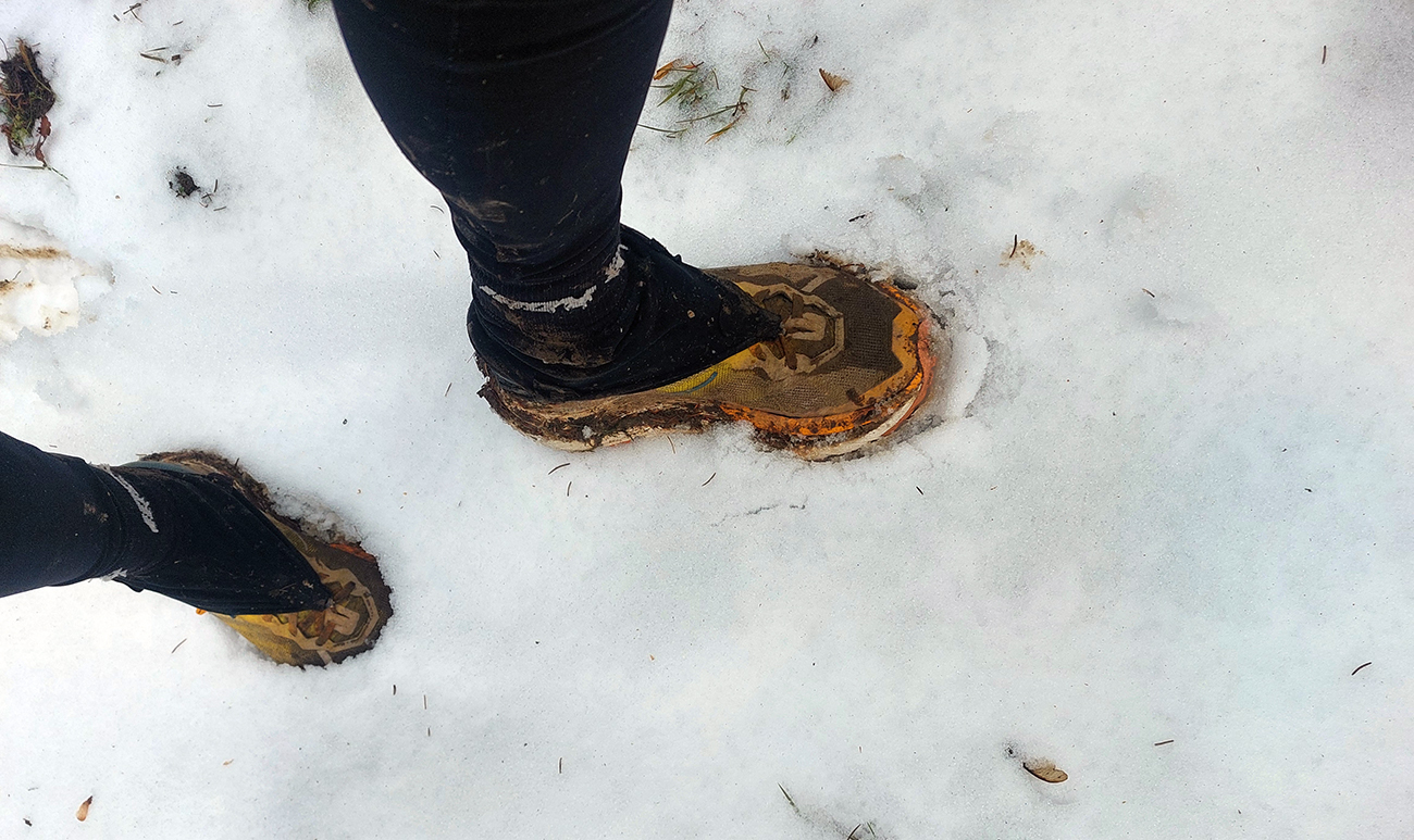 Nad dedinou som zatočil doľava a zbehol do Hlavnej doliny. Jednoduchý, čoraz strmší výstup po modrej na Koškárovkú lúku pod Kľakom. Najprv čistý asfalt a romantikuš zákutia, potom bahno riedke, bahno husté, občas traktor a v strmom závere mokrý sneh. Čiže na najvyššom bode trasy s relatívne čistými aj ľahkými, len už trochu čvachtajúcimi botami.