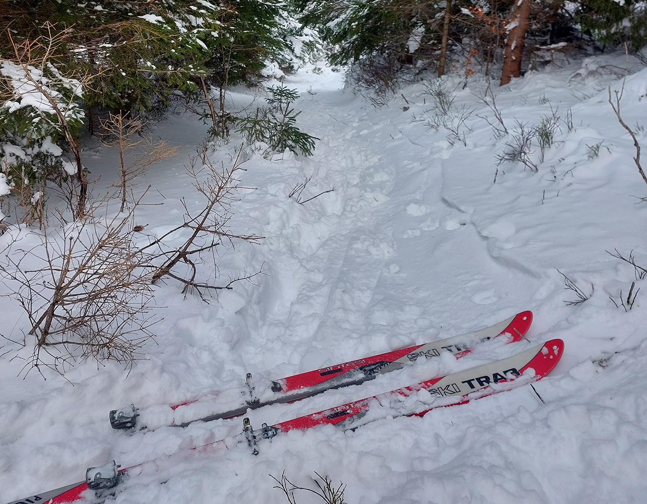 Na Minčol ma neťahalo, ale dozvedel som sa, že hore to na lyžiach pustí. Dole samozrejme treba zniesť, záver je strmý. Celá hrebeňovka smerom na Hole už potom pohodová, no pozor – len v tomto smere, do kopca. Opačne na pár miestach treba nosiť. Aj keď samozrejme v strmšej časti pod Zázrivou zo dva kŕdle piraniek striehnu a tesne pred vysielačom sa treba párkrát poriadne hlboko pokloniť v tom kosodrevinovom tuneli. Aj vo finále popri plote je to poriadne úzke.