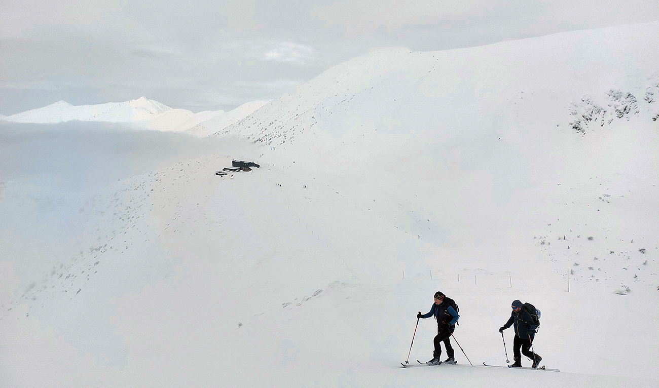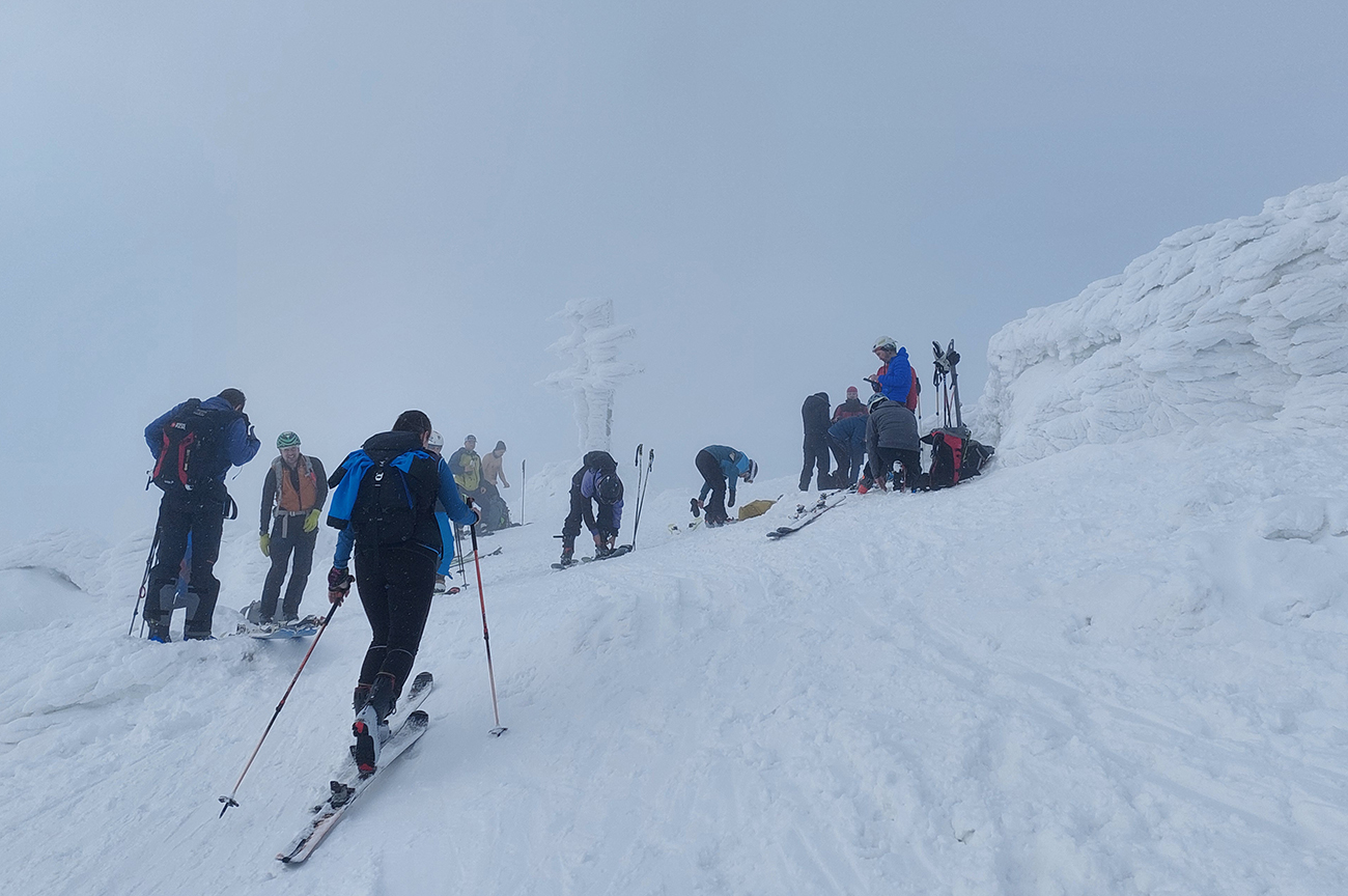 Prišla neodolateľná ponuka, že Ďumbier z Trangošky je istota! Ale že len v nedeľu, lebo v sobotu bude hnusne. Bolo síce aj v nedeľu, keď sa Červený Šíp za vytrvalého sprchovania bystro driapal hore dolinou, ale keď ulovil predposledné miesto na zákrute, tak bolo všetko oukej, lebo sporivá slovenská dušička od radosti zapišťala, že nemusí platiť parkovné. A skočila lyžiarkami rovno do poštrkovanej mláky pod Zázvorom. Ale od Zázvoru už sa dalo! Skoro ako od parkoviska, a to sa teraz cení! Pásy začvachtali v mokrom firne, zaradili sa do šóry podobne postihnutých a išlo sa. A neveriacky sa krútilo hlavami, koľké snehy tam všade naokolo ležia. A prestalo aj chčať, zato začalo nebyť vidno, tak výhľady len do spodných partií známych podďumbierskych zjazdoviek vlčej a Halašovej a ktovie ako sa to tam všetko volá. Ale že to sa cestou nazad isto zlepší.