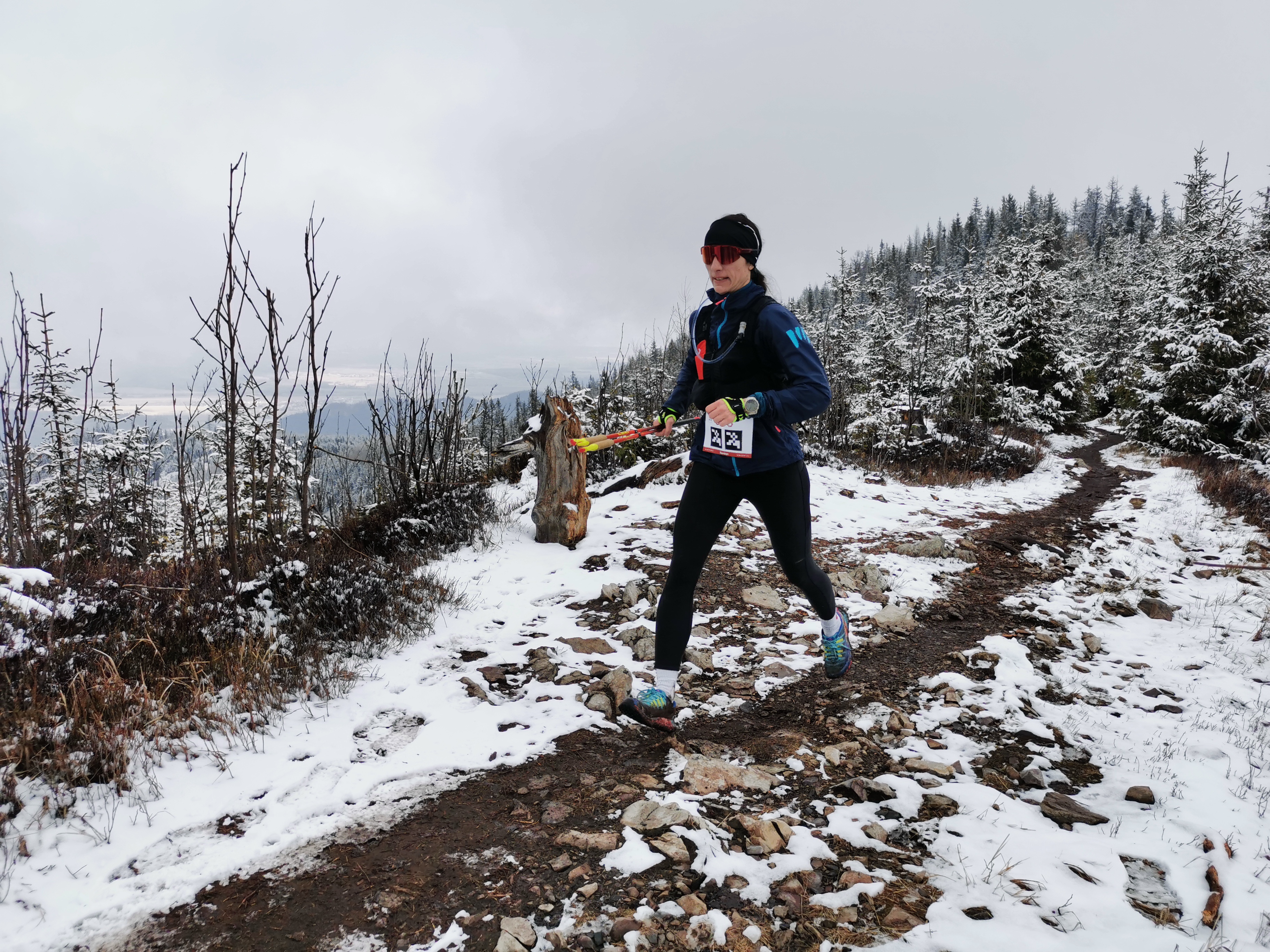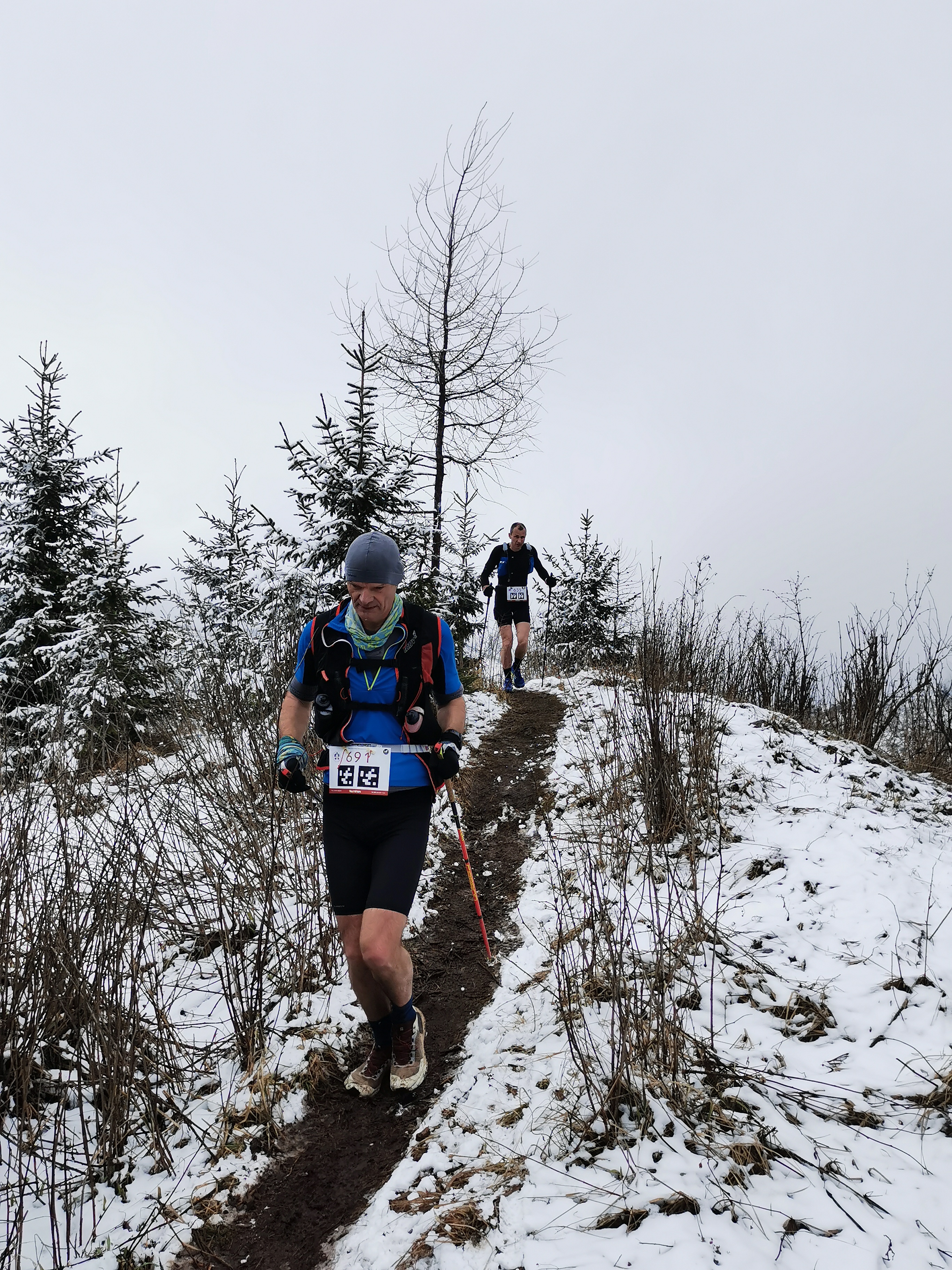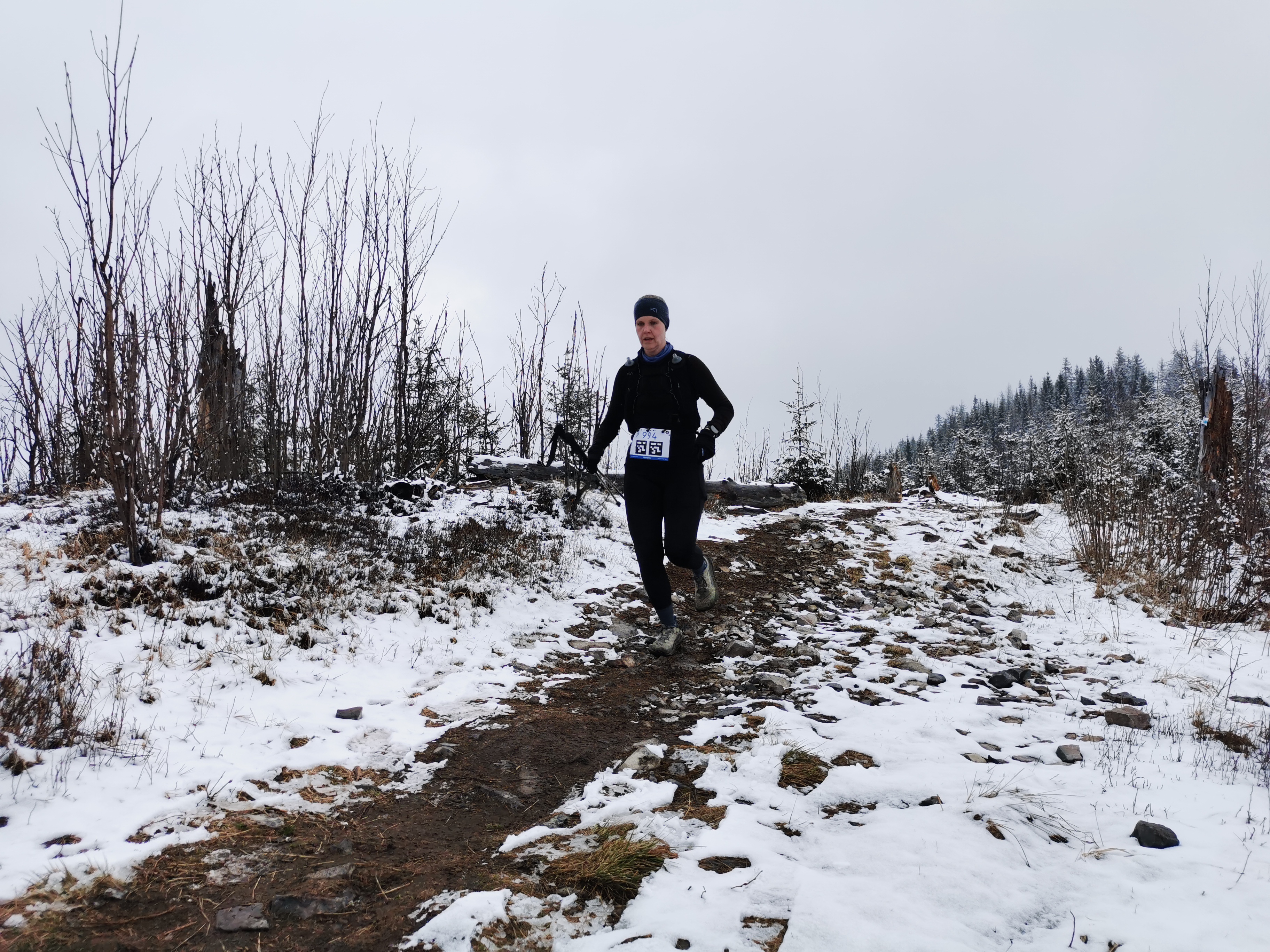 Posvietime si ale bližšie na dve najdlhšie trate, kde do cieľa pribehlo spolu vyše 410 bežcov. Veľmi slušné číslo. Obidve trate viedli hrebeňom Kozích chrbrov cez ich najvyšší bod Kozí kameň. Počasie tento raz neponúklo výhľady na Tatry ako minulý rok, ale tak aspoň bolo príjemne chladno a nočná !miestami snehová) prehánka zariadila, že sa neprášilo.